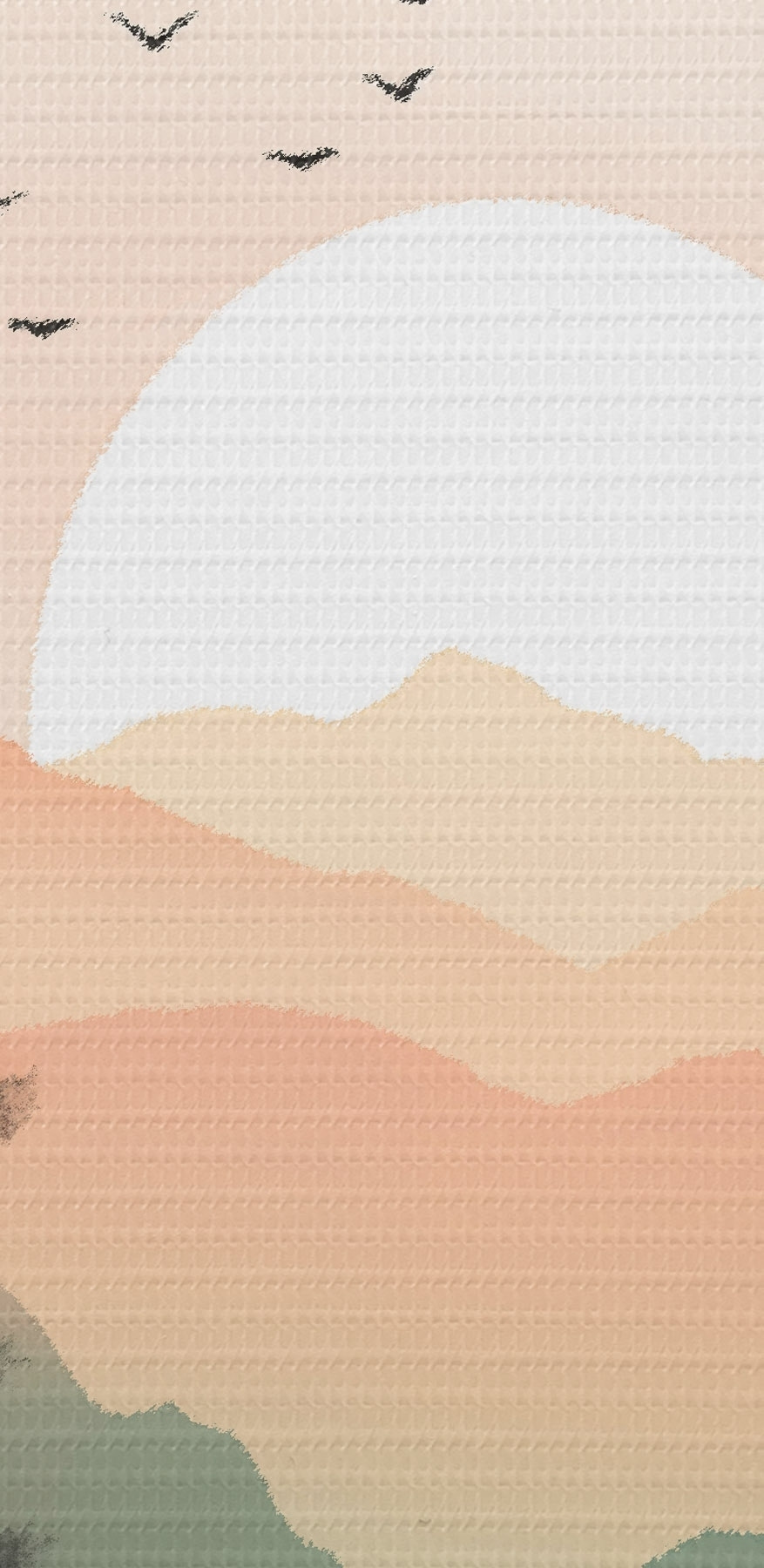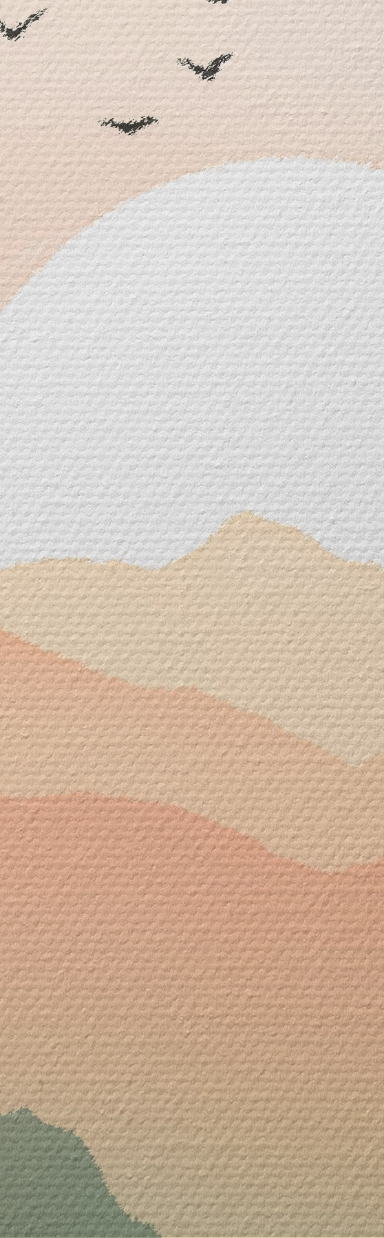 Image Coucher de soleil pastel sur un lac tranquille avec des collines lointaines et des oiseaux Nr r46508