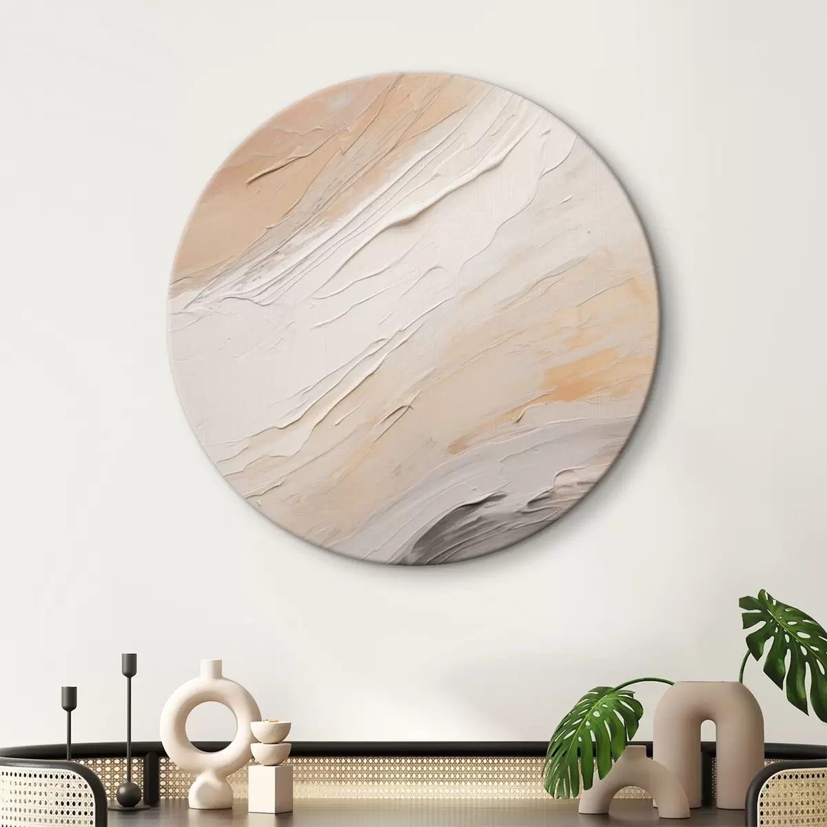 Tableaux ronds Enduit texturé tourbillonnant dans des tons beige chaud et gris doux r46511