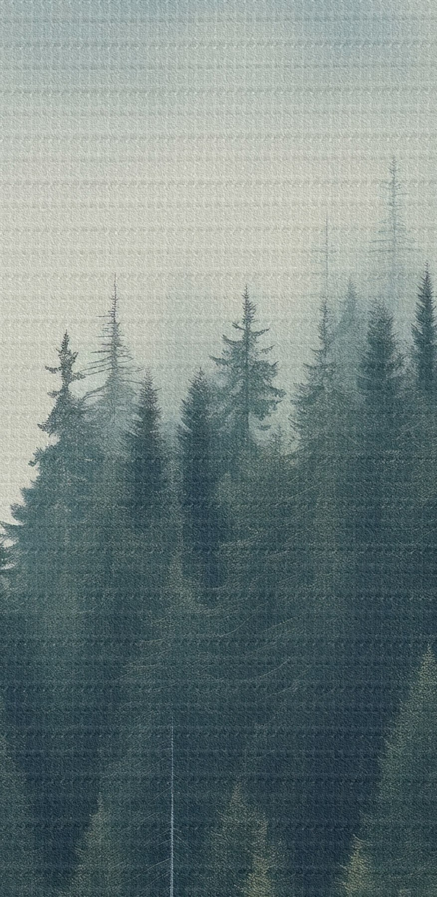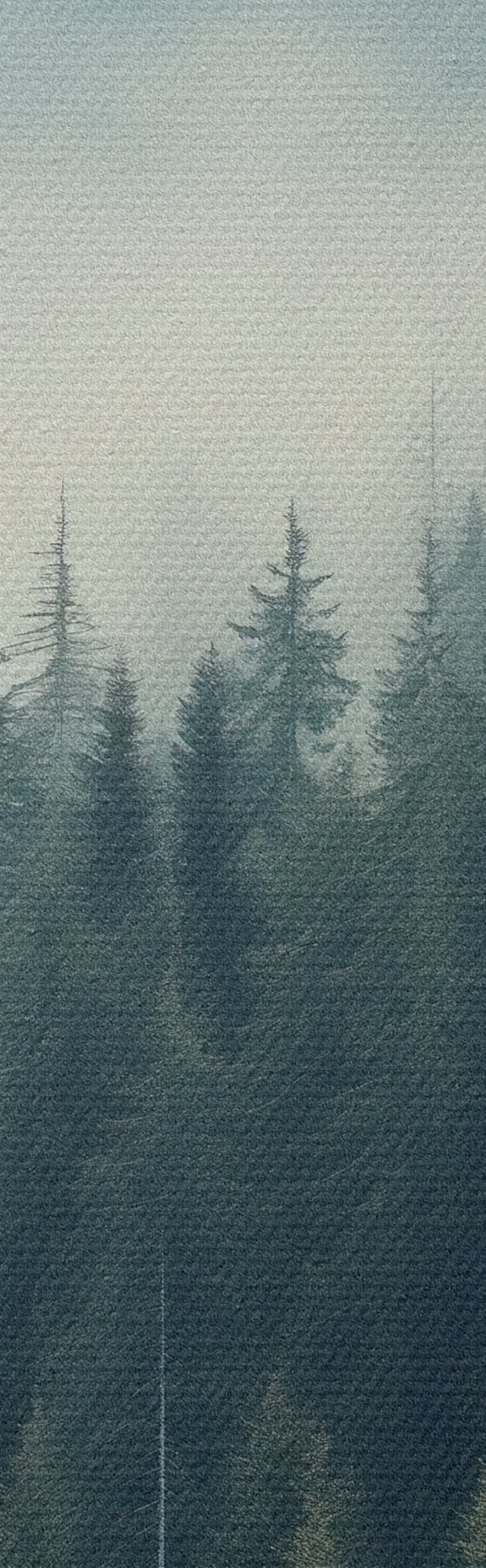 Image Brouillard sur les pentes couvertes de conifères, tons vert foncé Nr r46516
