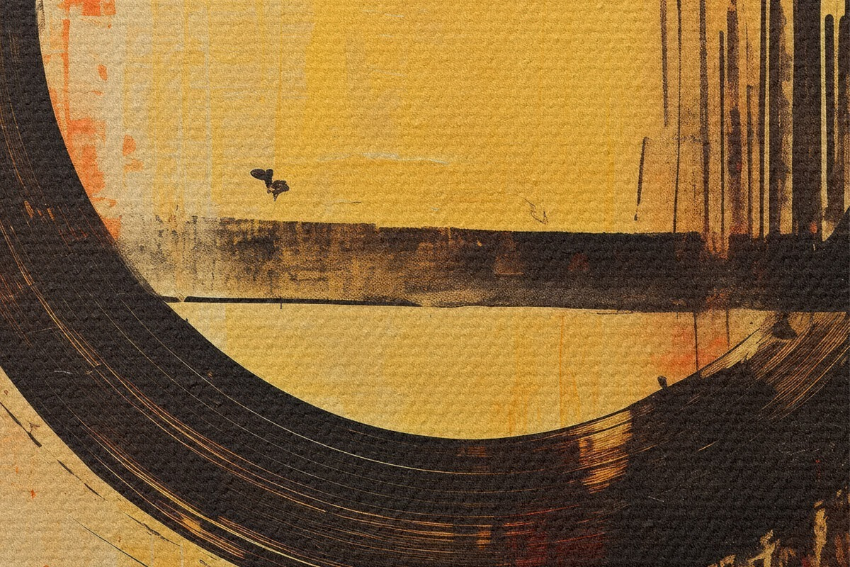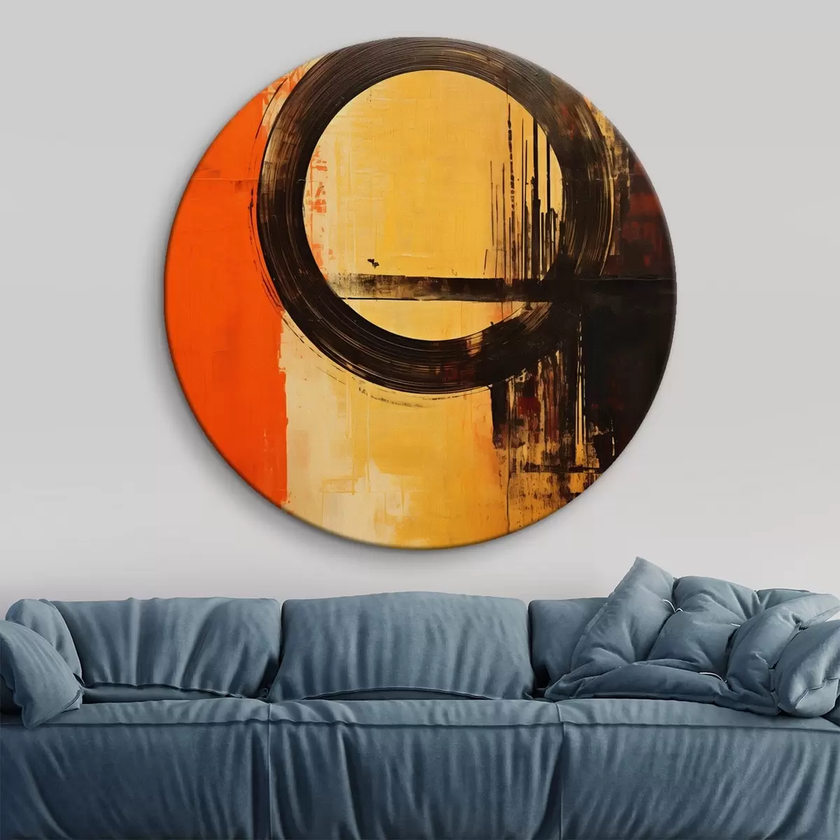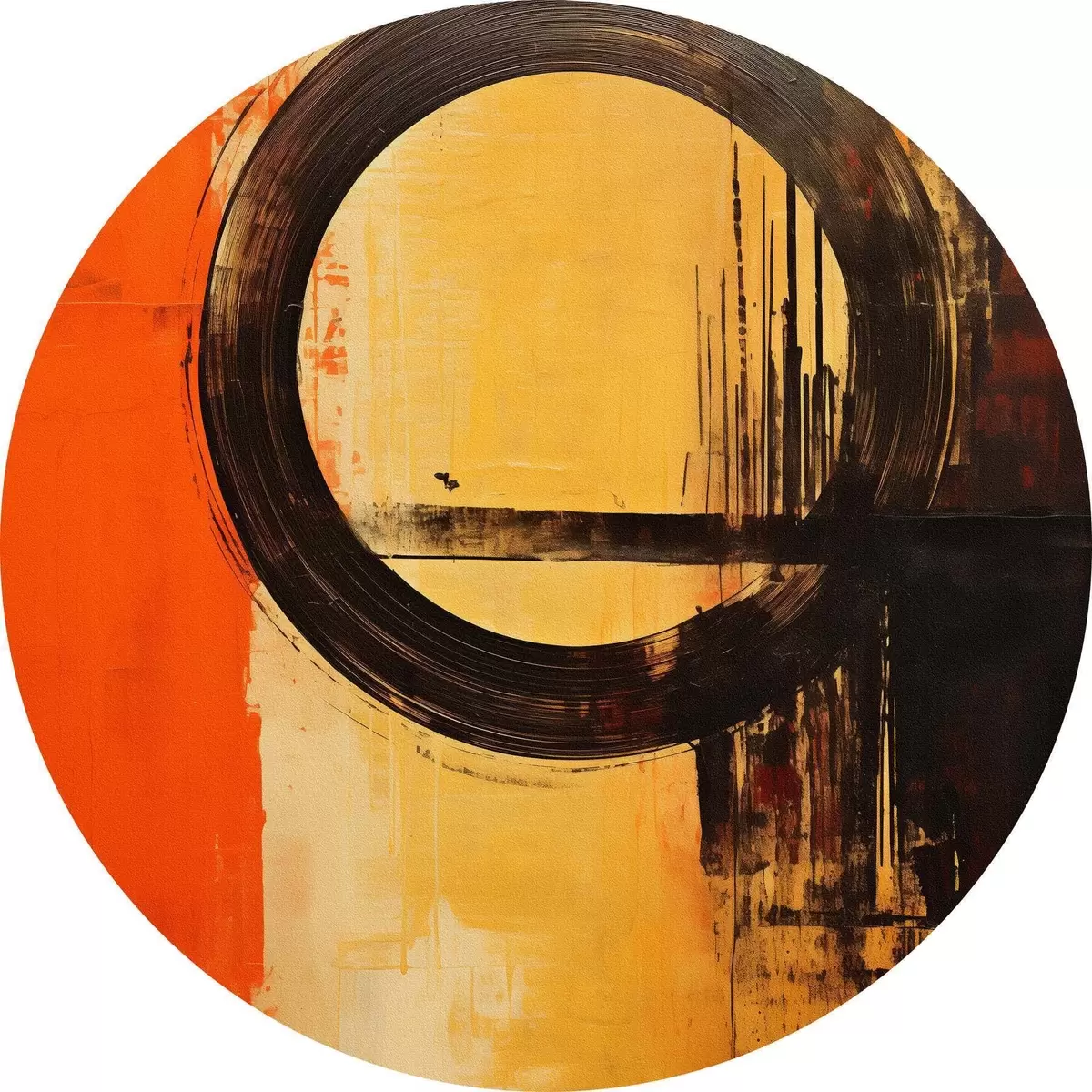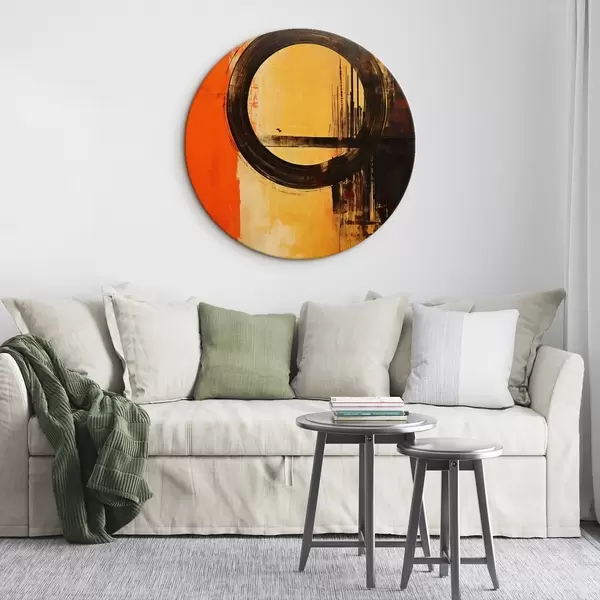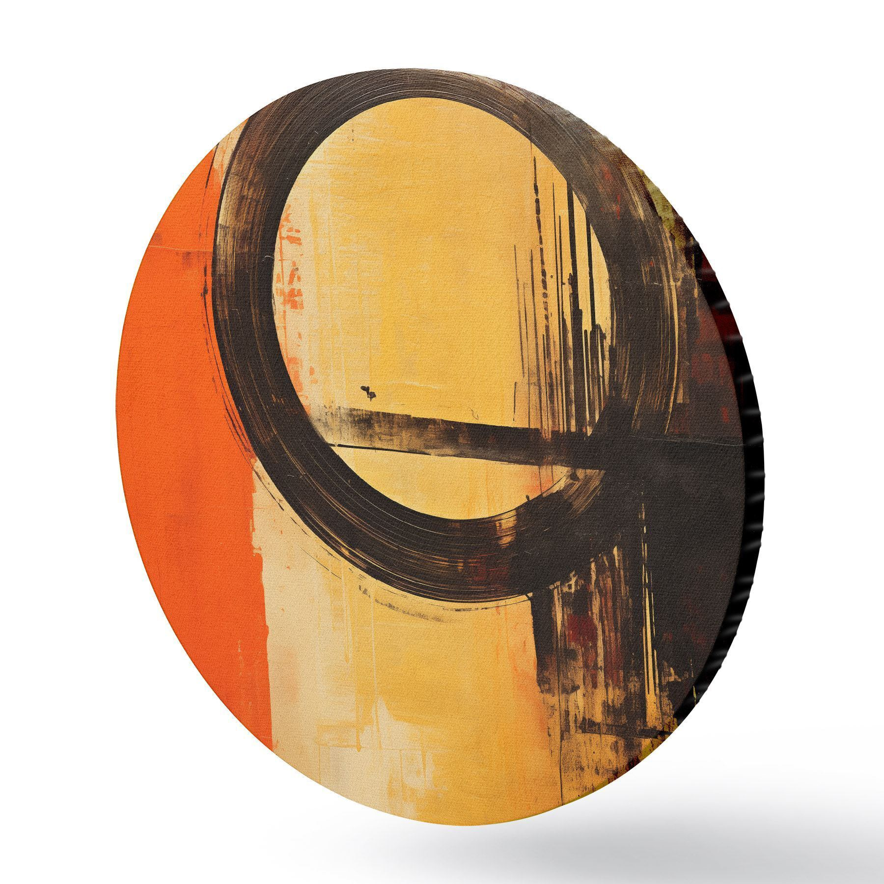 Tableaux ronds Résumé avec un anneau noir sur fond sable-terre cuite r46529