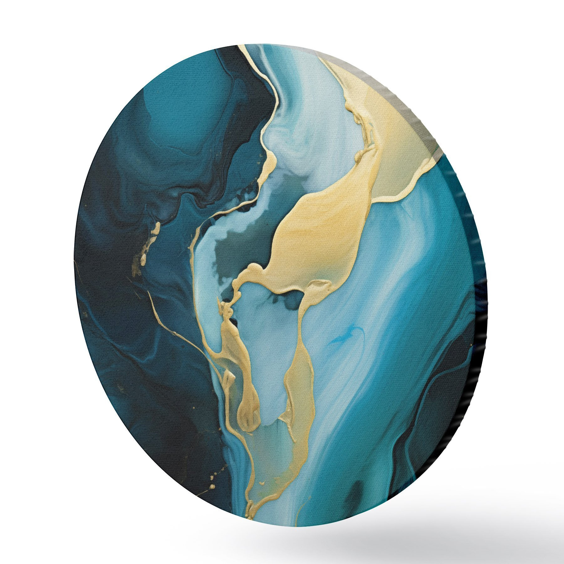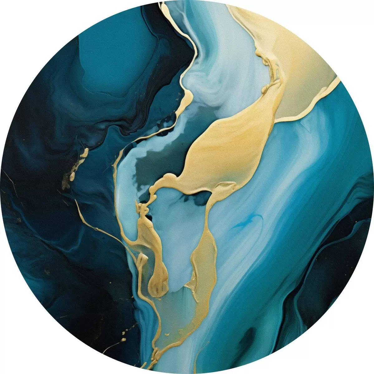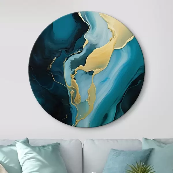 Tableaux ronds Abstrait bleu sarcelle avec un trait ocre r46530