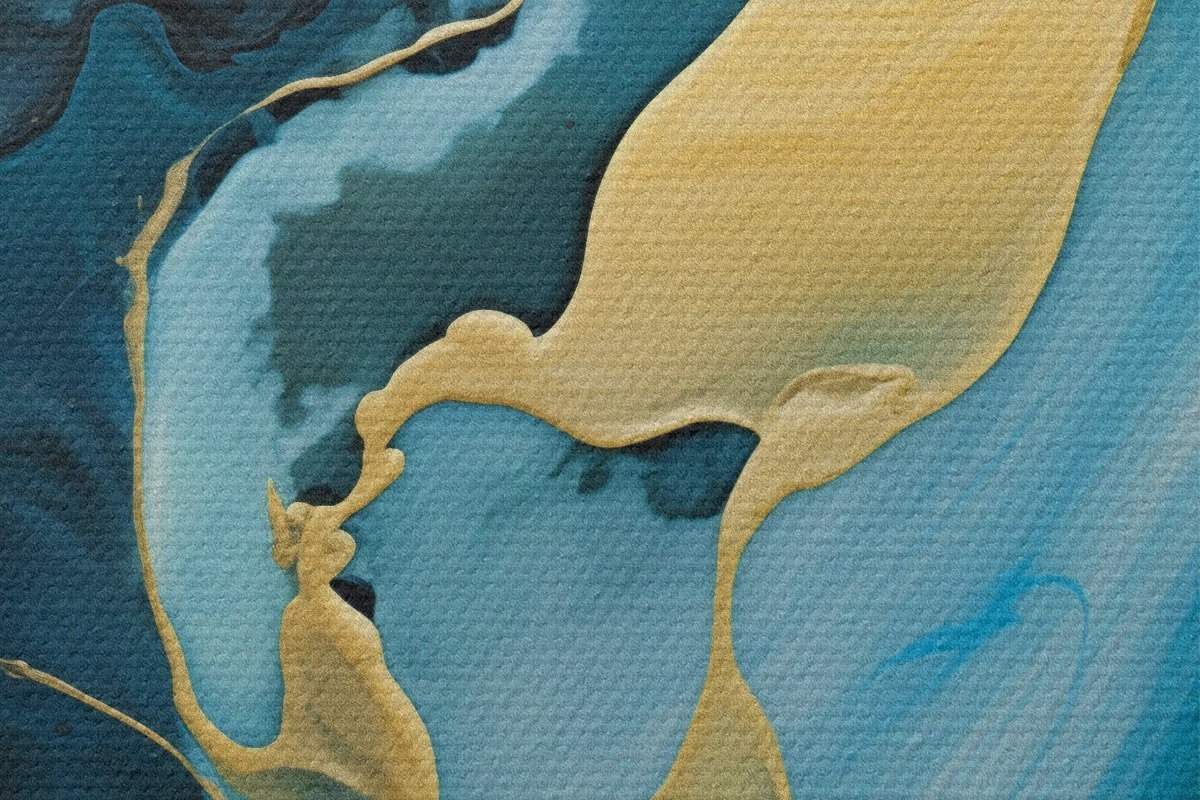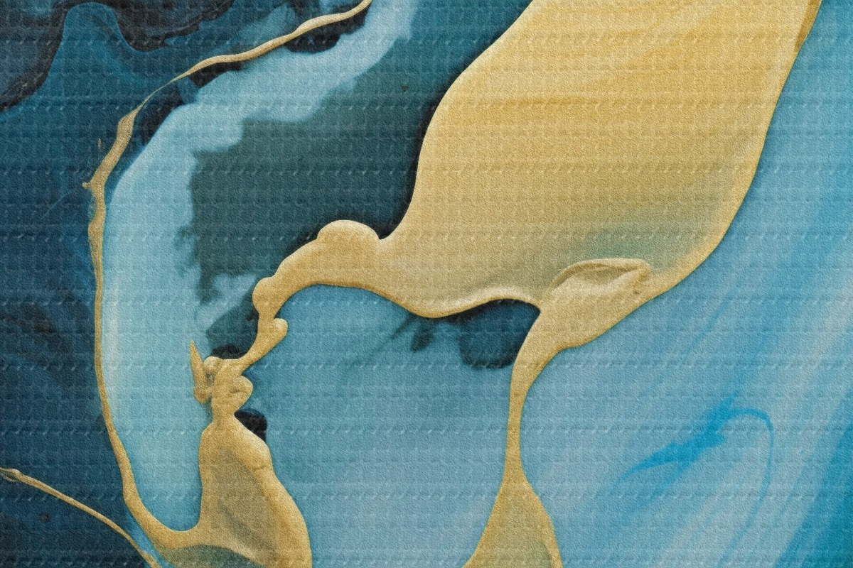 Image Abstrait bleu sarcelle avec un trait ocre Nr r46530