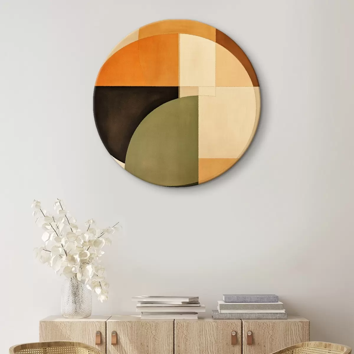 Tableaux ronds Cercles qui se croisent dans une palette sable-olive r46537