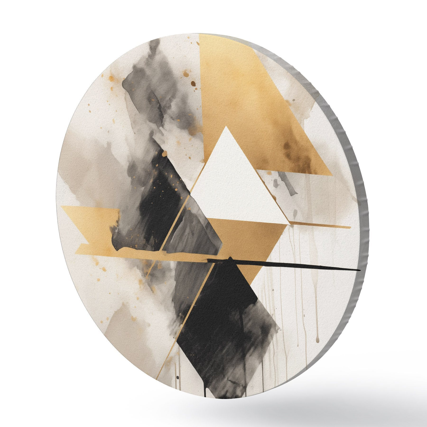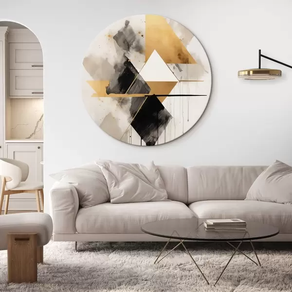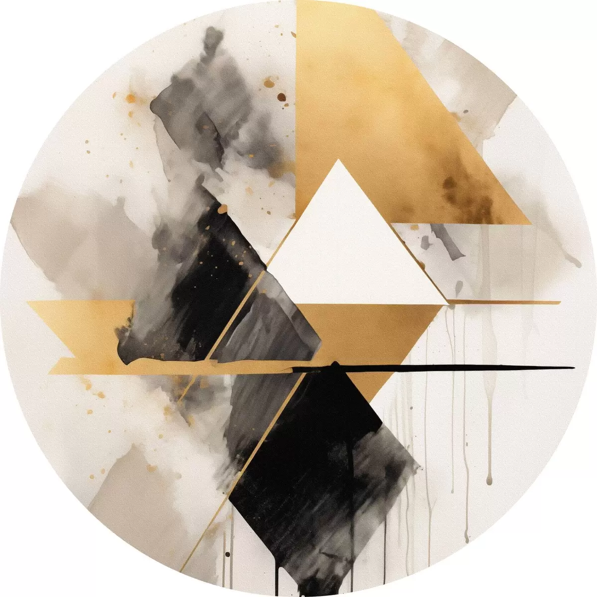 Tableaux ronds Géométrie avec des triangles et un losange noir, traits beiges r46539