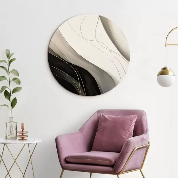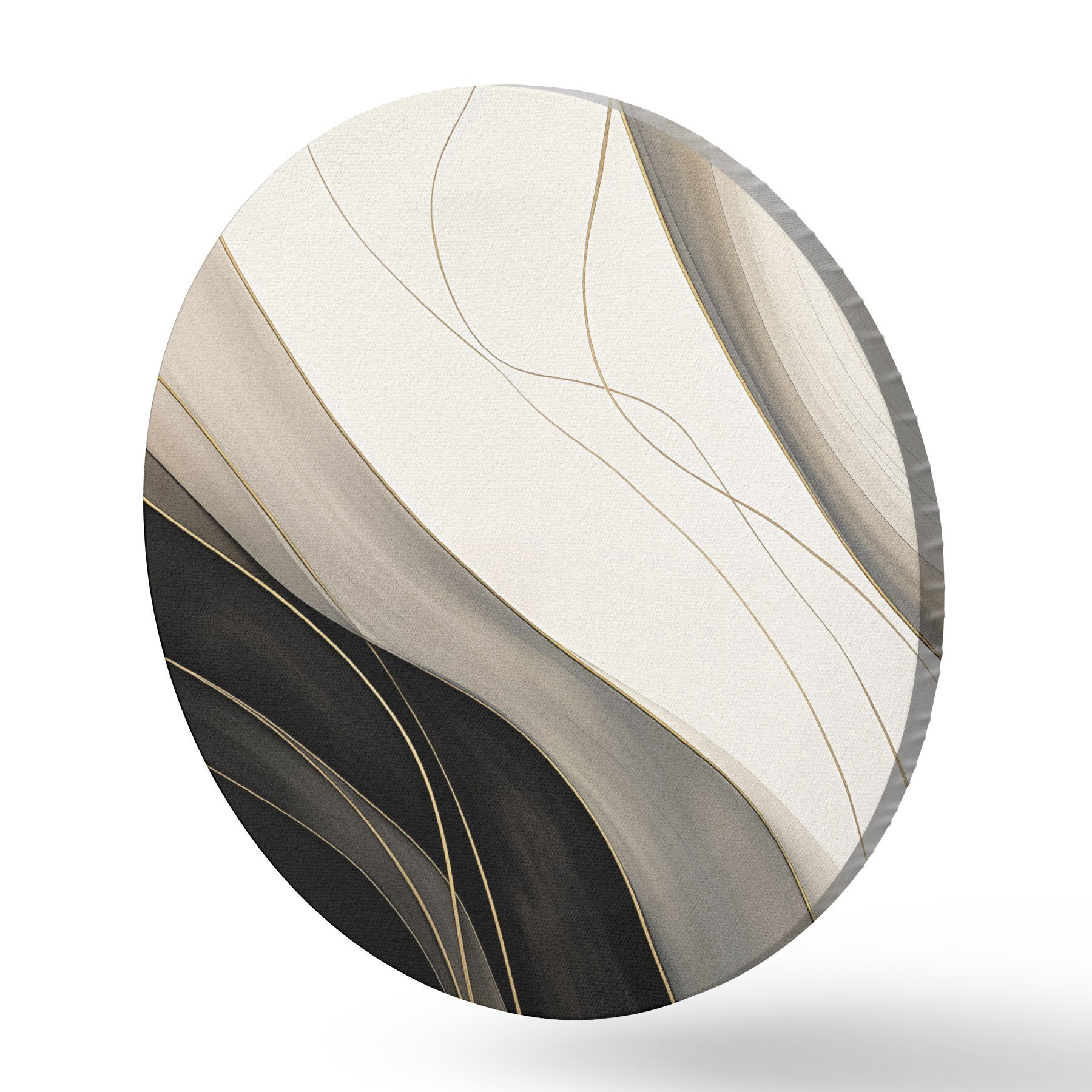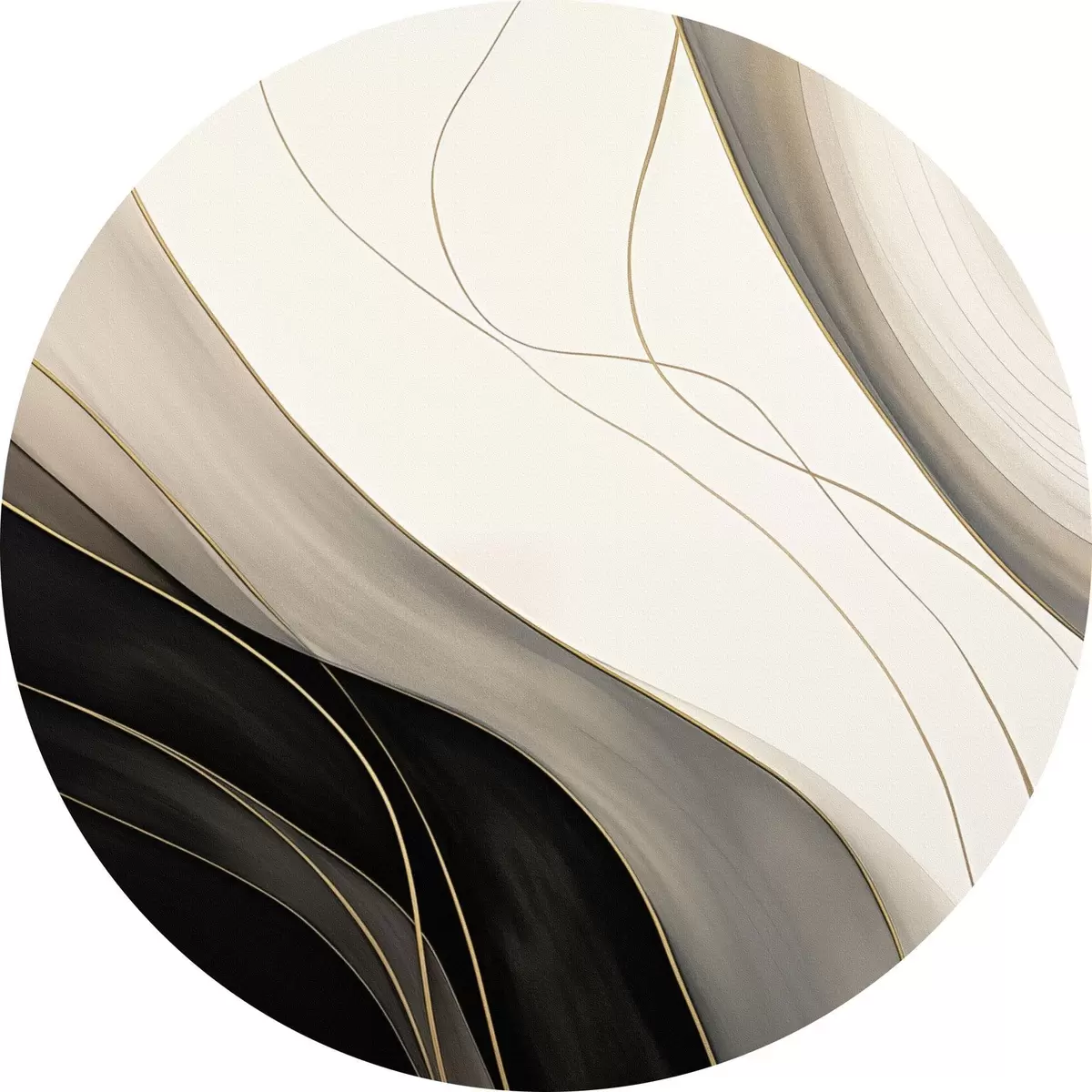 Tableaux ronds Vagues noires et beiges avec de fines lignes ocres r46541