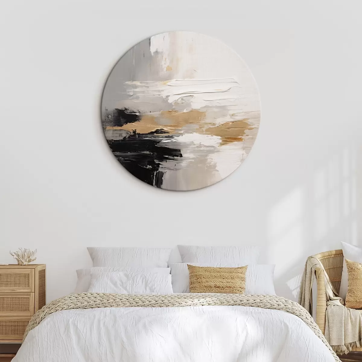 Tableaux ronds Couches contrastées de noir et d'ocre sur fond nude r46544
