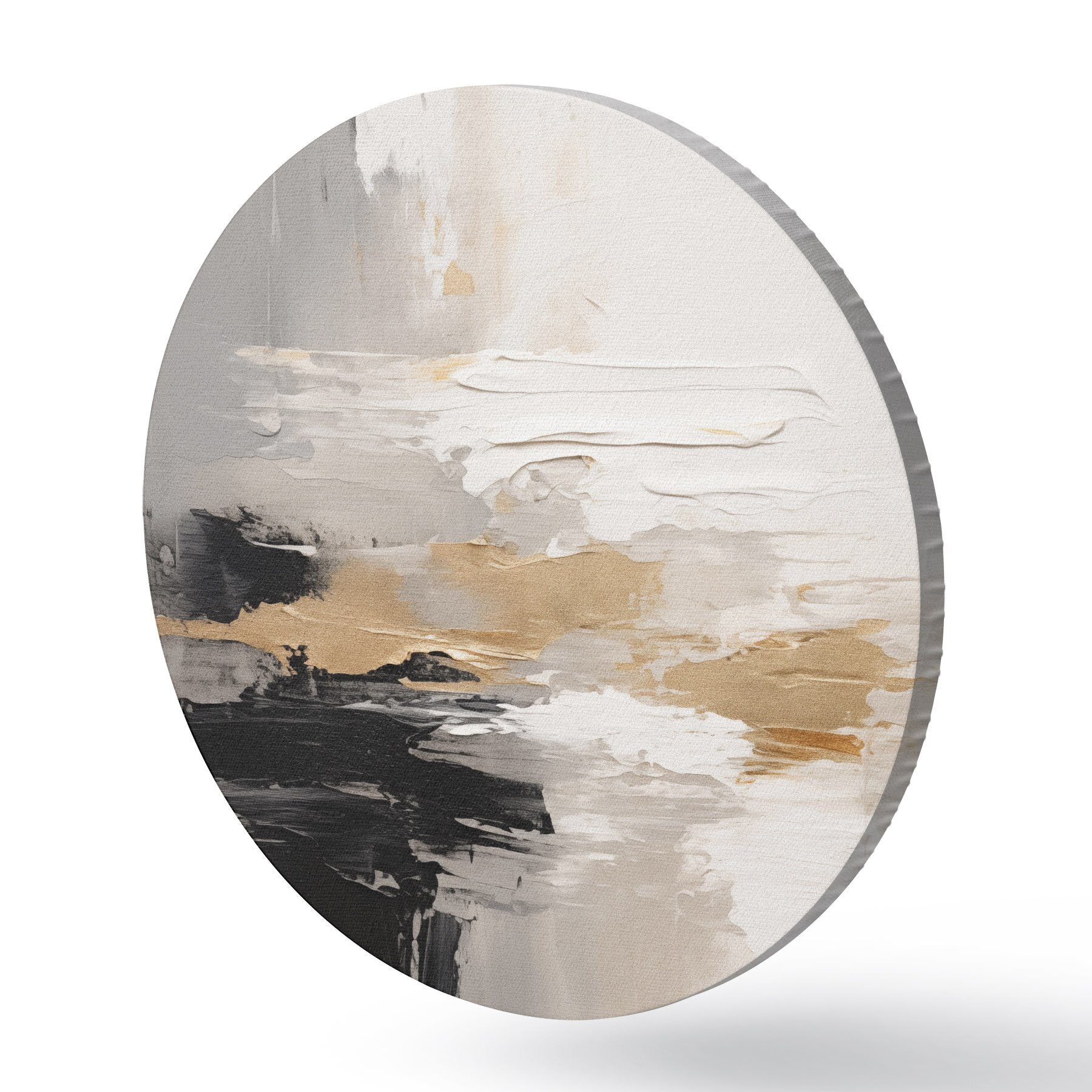Tableaux ronds Couches contrastées de noir et d'ocre sur fond nude r46544