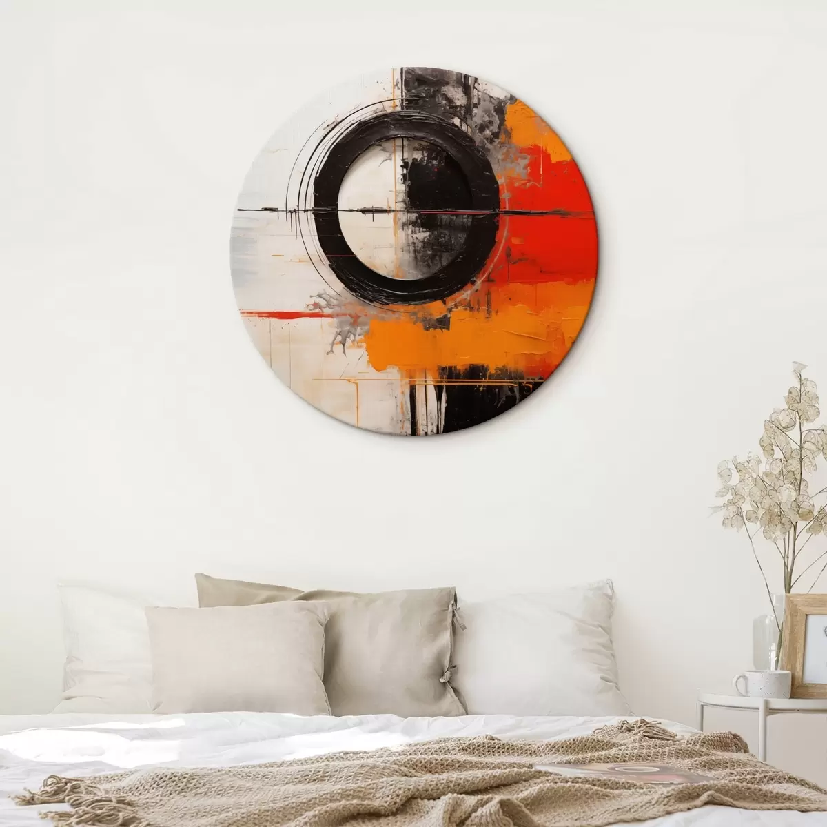 Tableaux ronds Cercle noir sur fond blanc, traits et éclaboussures orange r46549