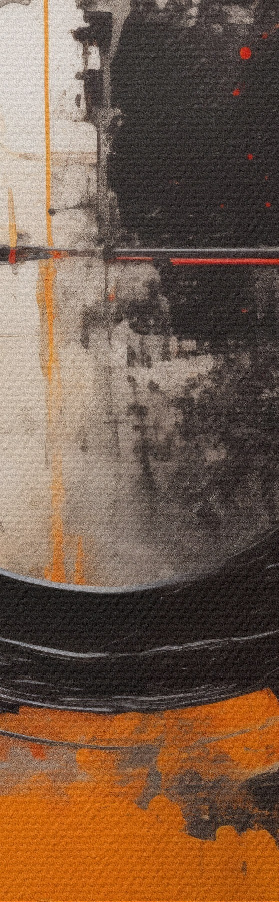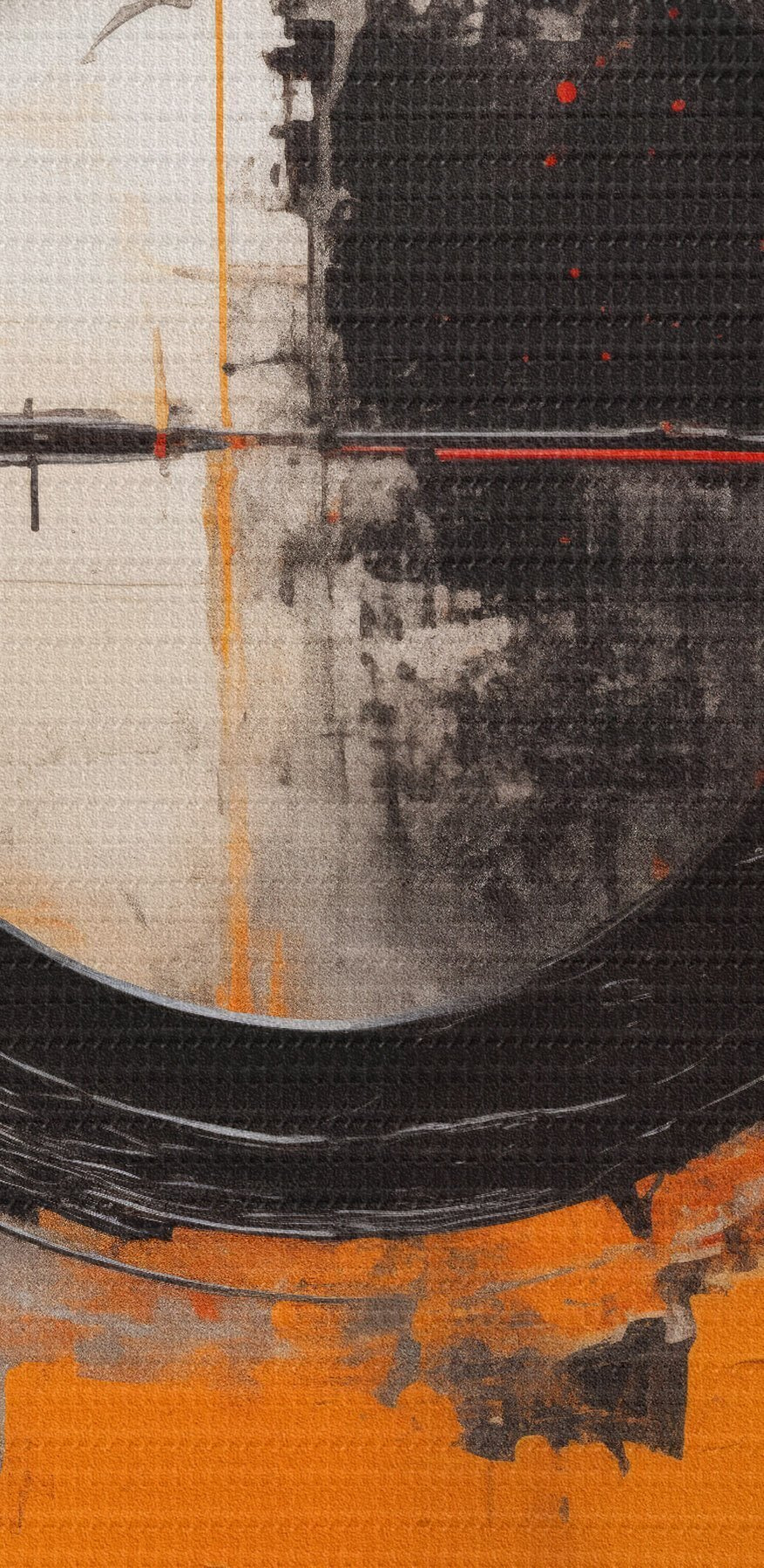 Image Cercle noir sur fond blanc, traits et éclaboussures orange Nr r46549