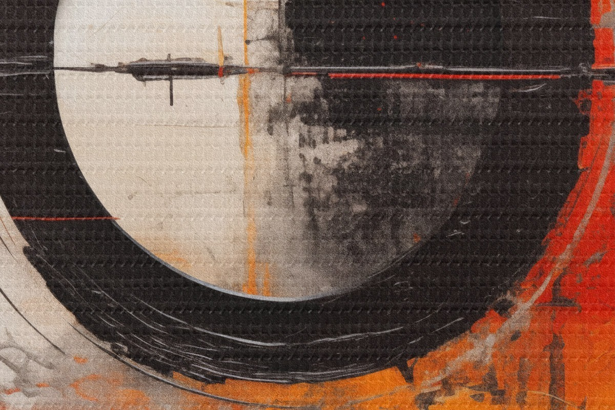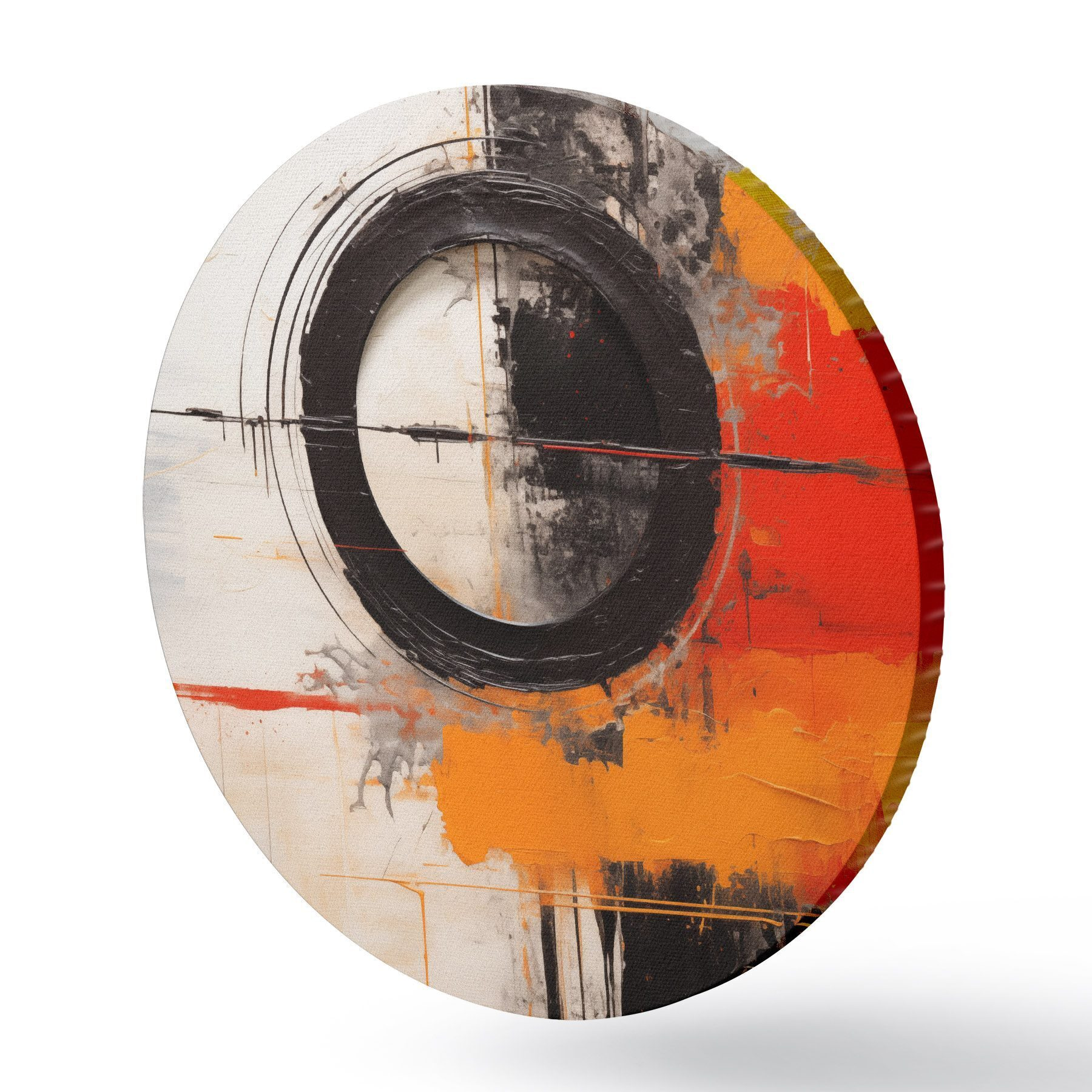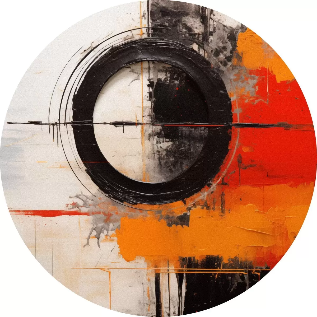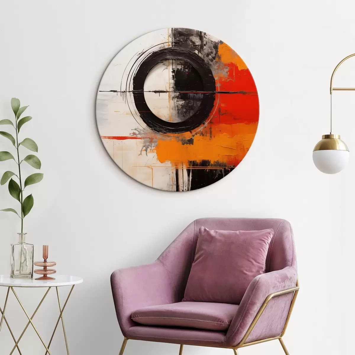Tableaux ronds Cercle noir sur fond blanc, traits et éclaboussures orange r46549