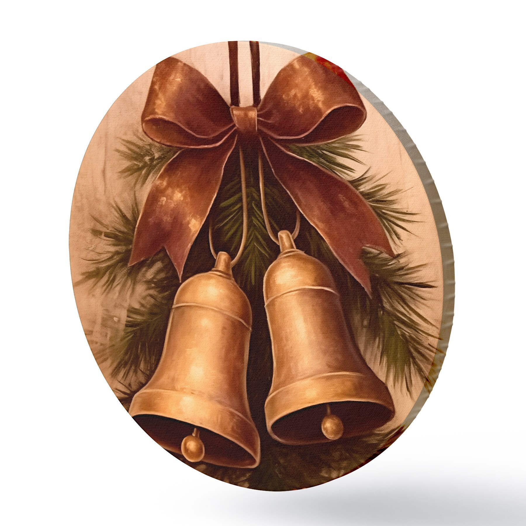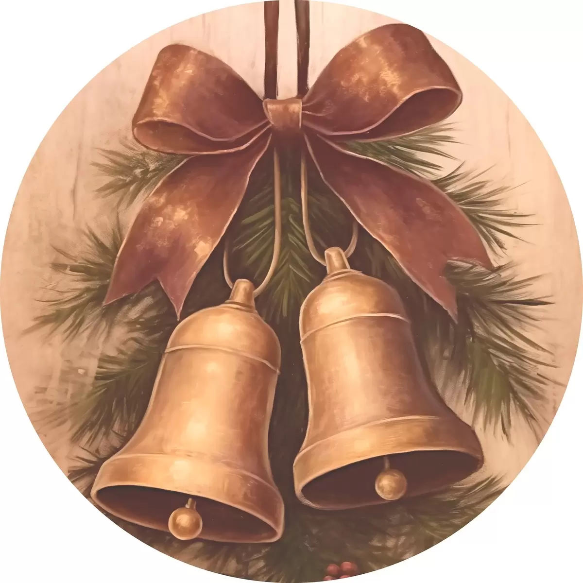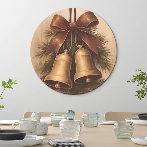 Tableaux ronds Décoration de Noël vintage avec deux cloches et un nœud r46626