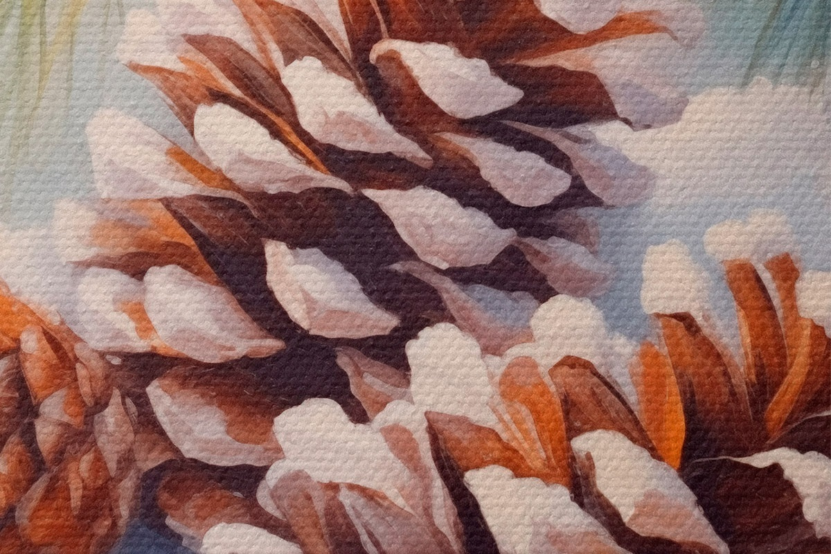 Image Pommes de pin et branches recouvertes de neige Nr r46631