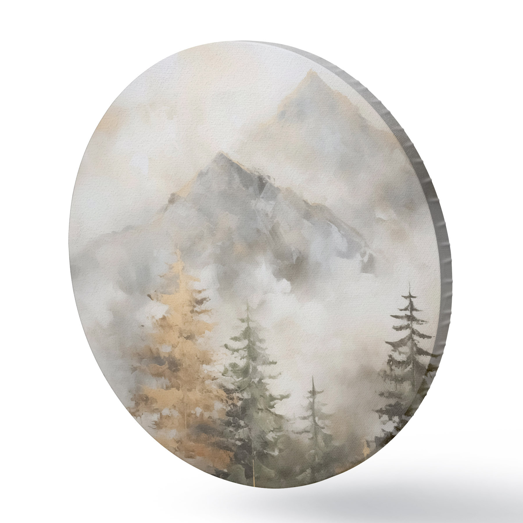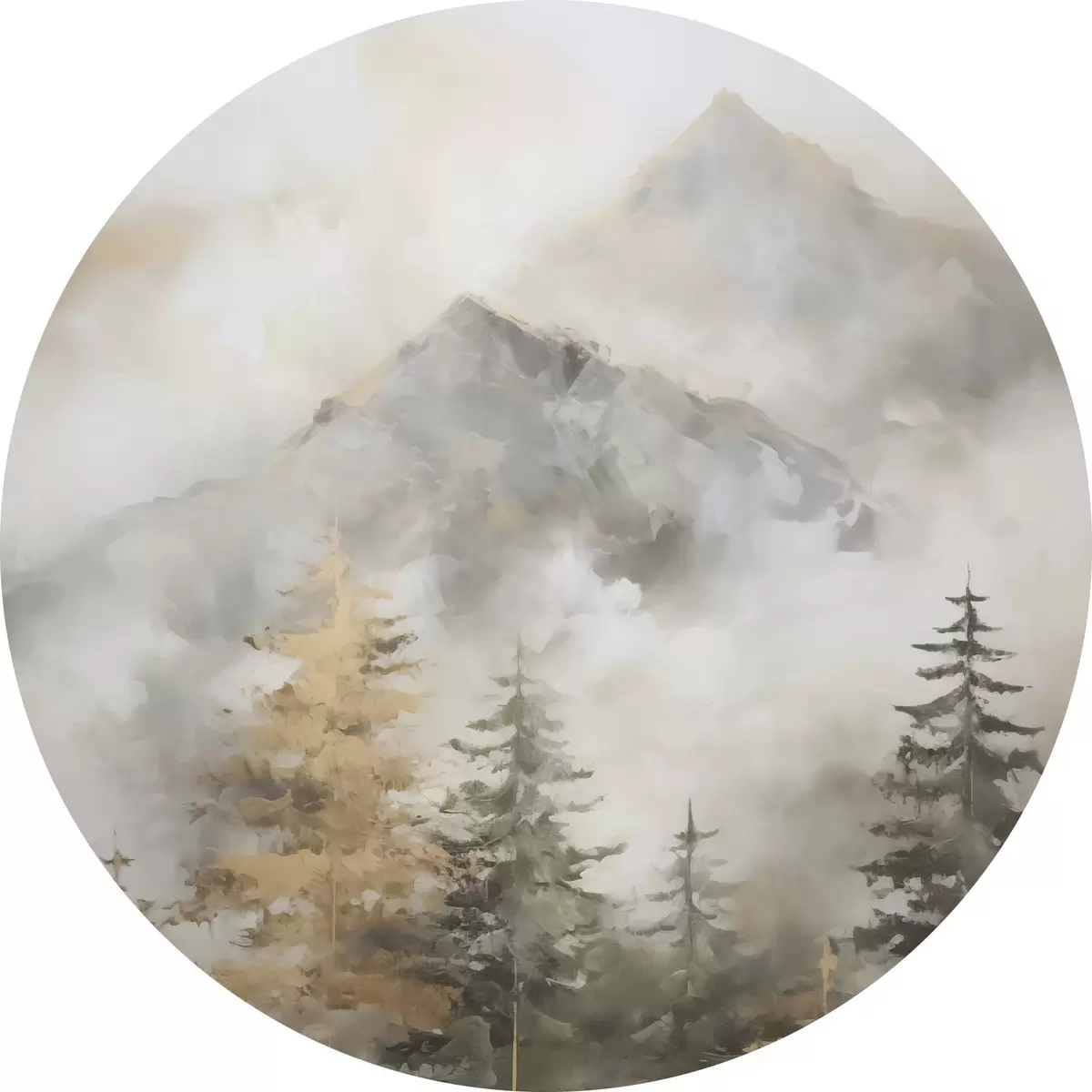 Tableaux ronds Forêt avec les montagnes en arrière-plan, imitation de peinture r46670