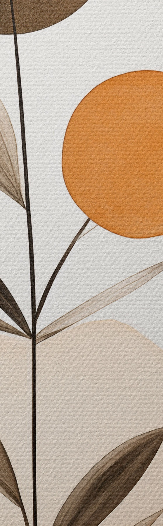 Image Imitation de peinture abstraite avec des cercles orange et gris, des feuilles et des branches, style moderne, effet aquarelle Nr r46698