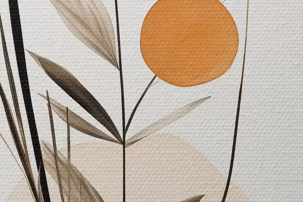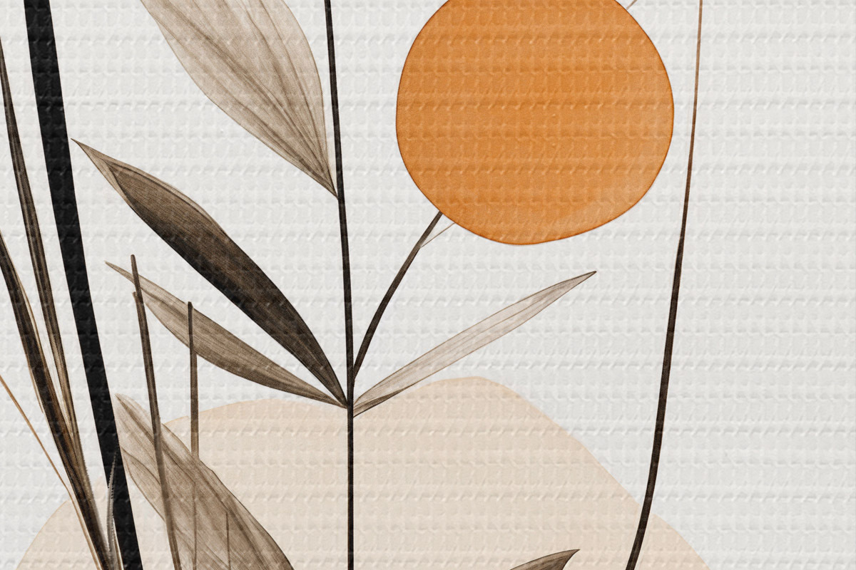 Image Imitation de peinture abstraite avec des cercles orange et gris, des feuilles et des branches, style moderne, effet aquarelle Nr r46698