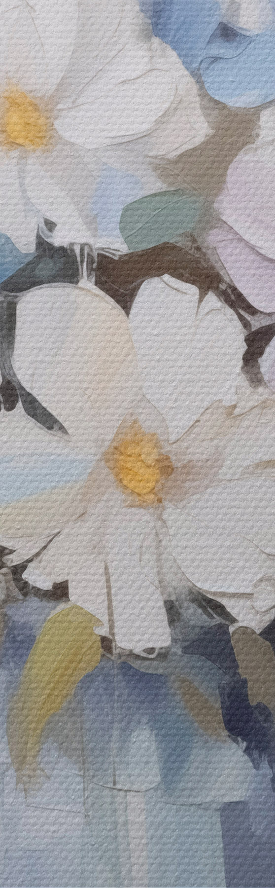 Trois types de matériaux peuvent être commandés : Economic Canvas - matériau dense et durable pour l'impression numérique, identique à la toile de peintre, surface imperméable, reproduction réaliste des détails, matériau à grain moyen. Premium Canvas - la texture ressemble à celle d'une toile de peintre (petits fils entrelacés). Reproduction douce et détaillée de l'image sur une surface mate. Eco-Premium - tissu 100 % coton de haute qualité. Grâce aux fibres naturelles de coton, le matériau est durable et résistant à l'usure. Excellente reproduction des couleurs et des détails.