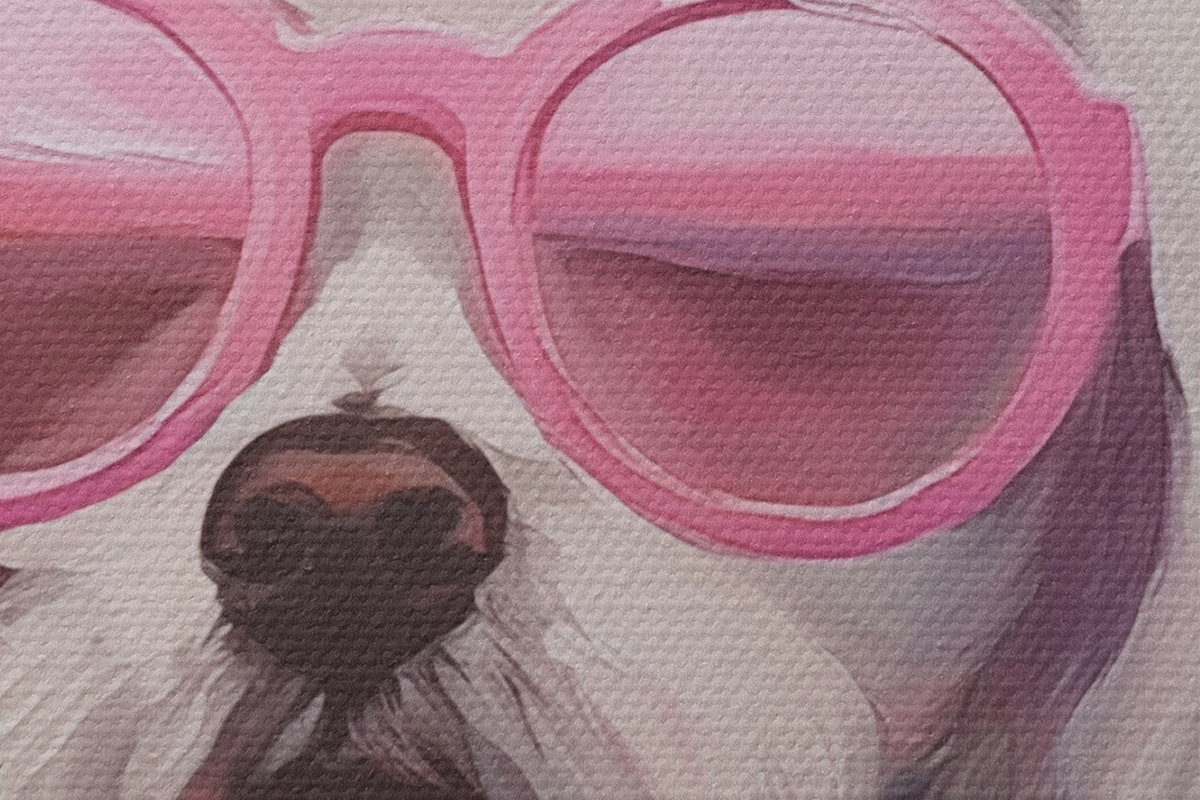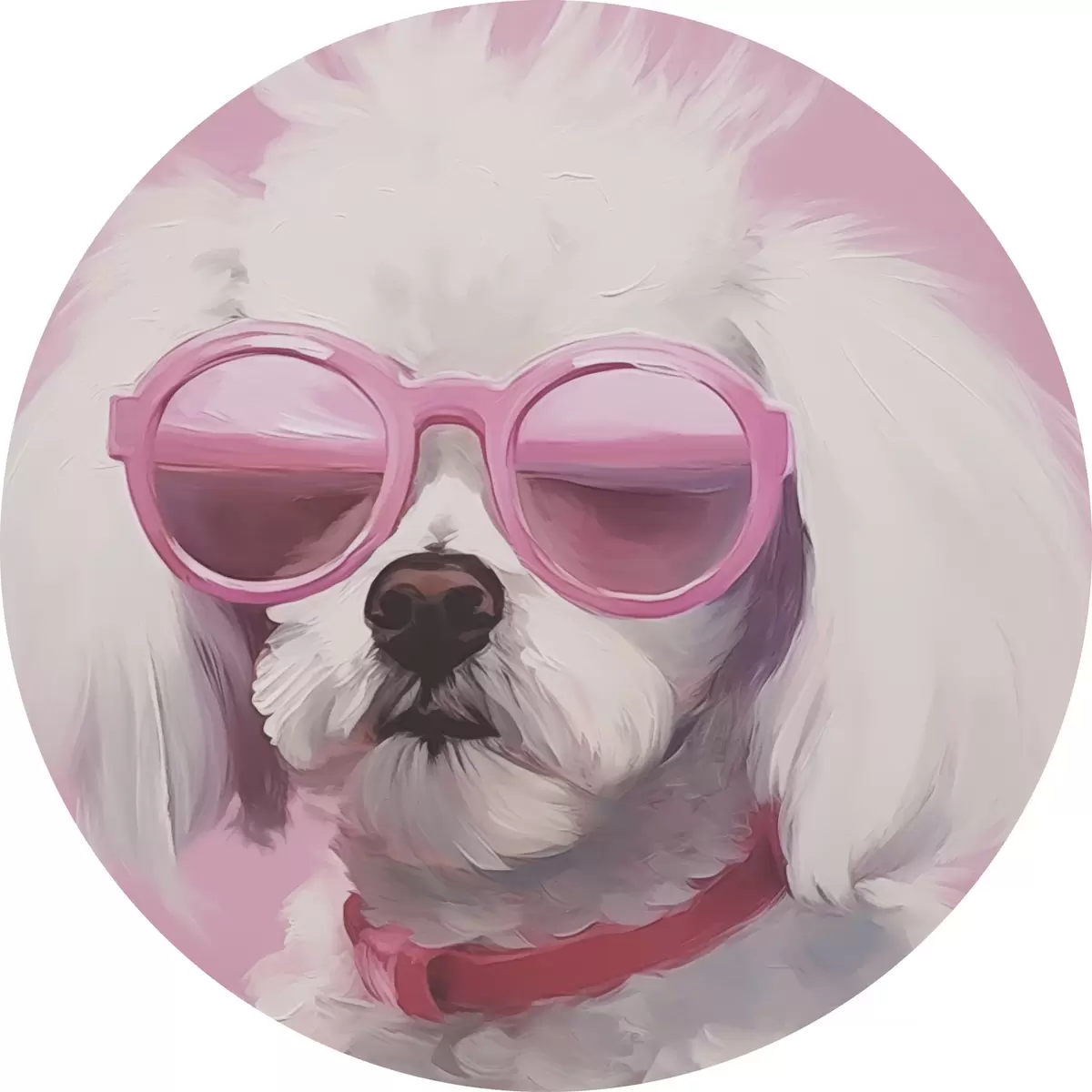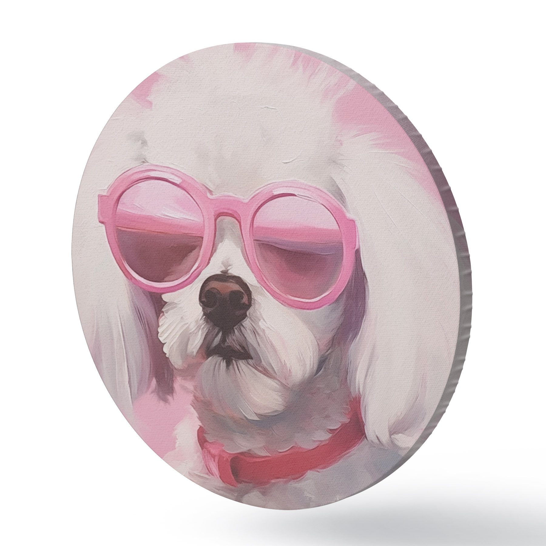 Tableaux ronds Un petit chien portant des lunettes est une imitation de peinture. r46722