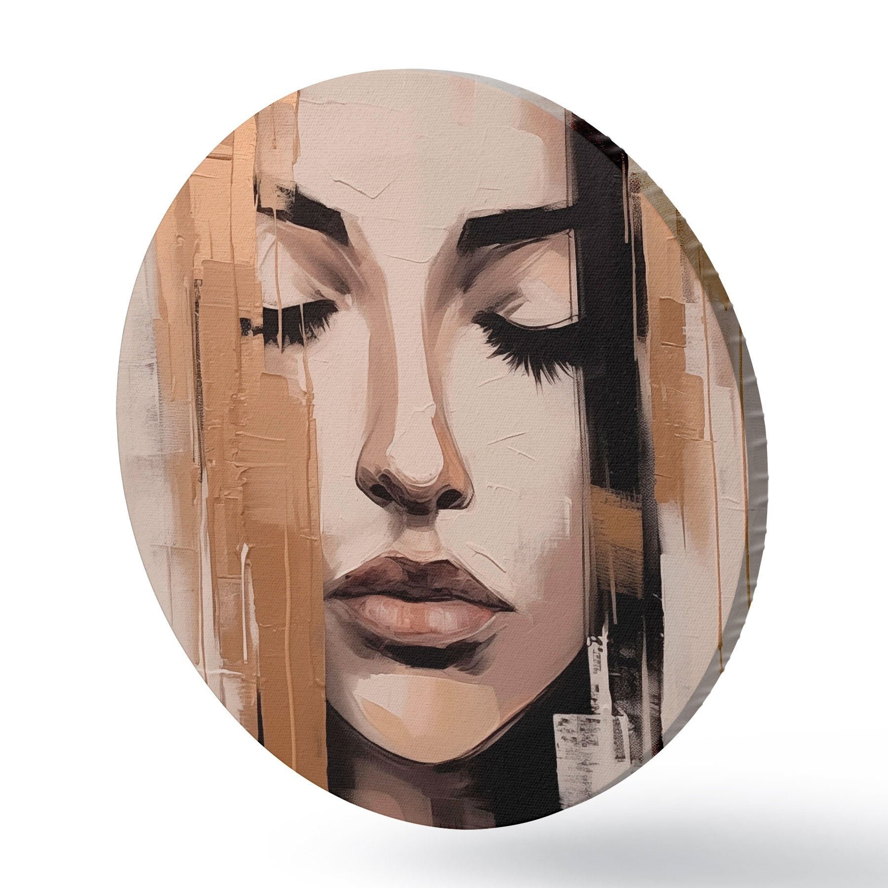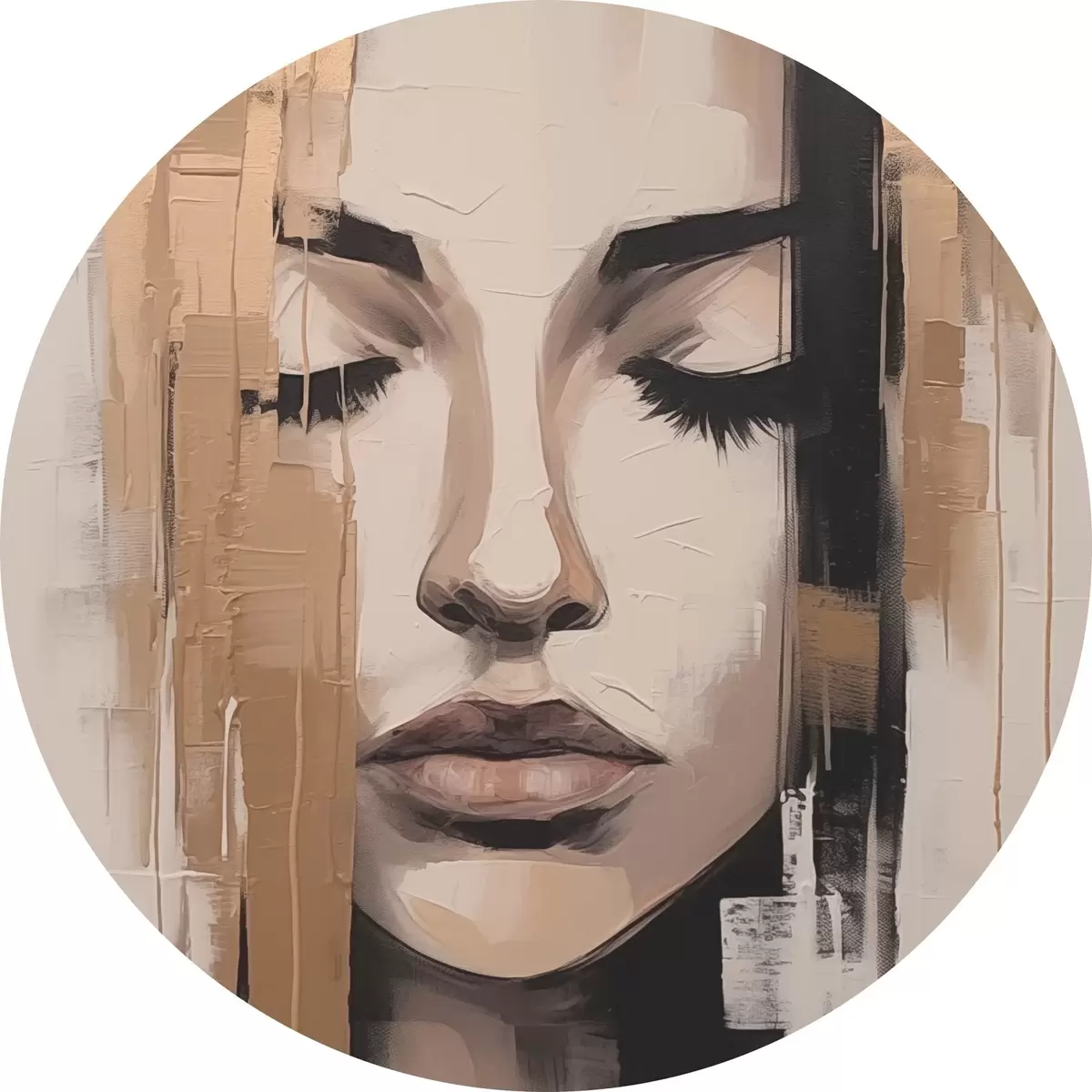Tableaux ronds Portrait d'une femme. Coups de pinceau abstraits. r46733