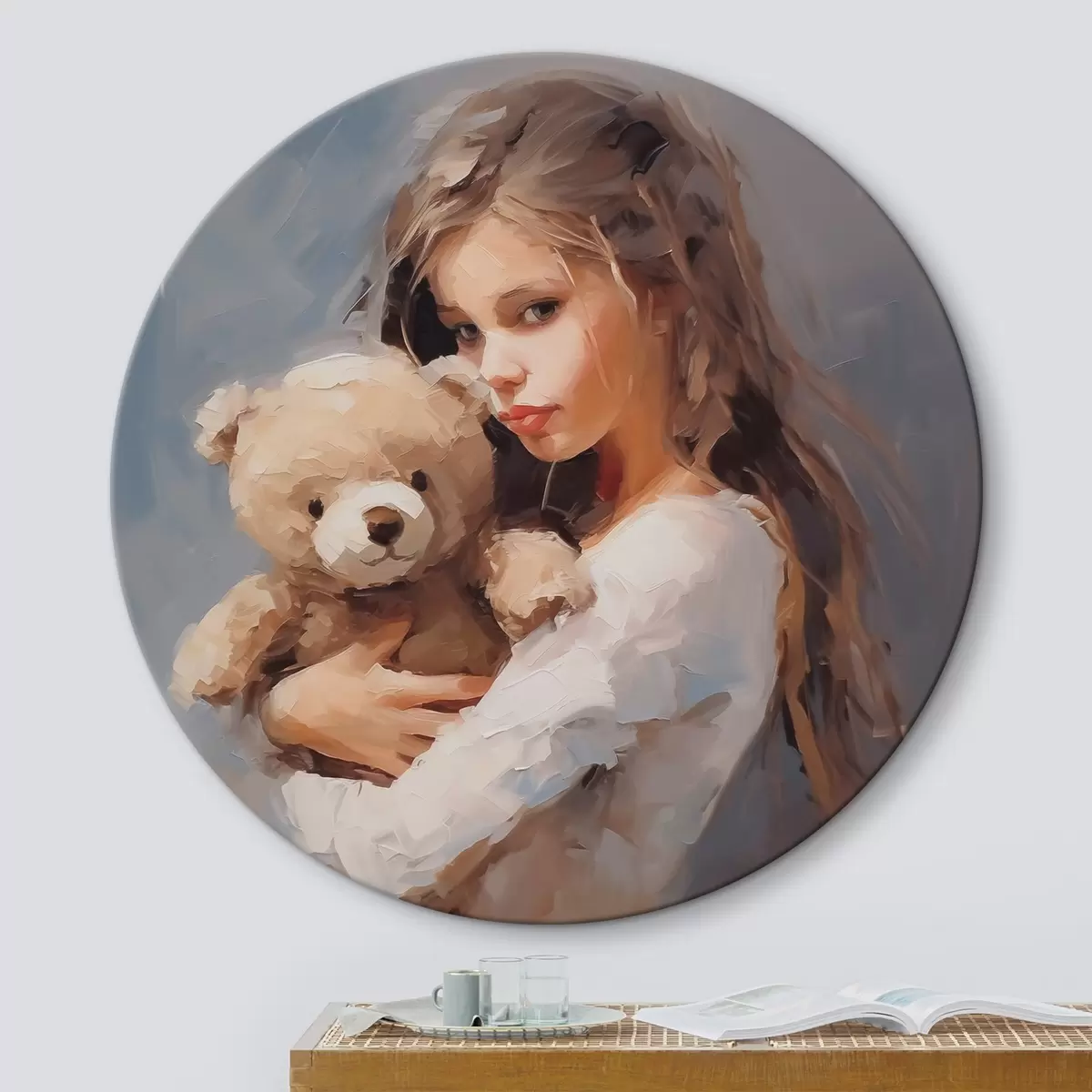 Tableaux ronds Fille avec un ours en peluche, imitation de peinture r46746