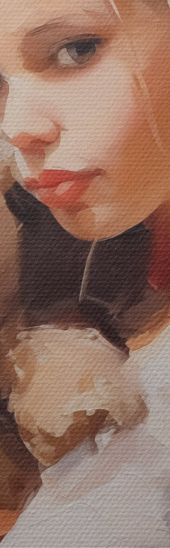 Trois types de matériaux peuvent être commandés : Economic Canvas - matériau dense et durable pour l'impression numérique, identique à la toile de peintre, surface imperméable, reproduction réaliste des détails, matériau à grain moyen. Premium Canvas - la texture ressemble à celle d'une toile de peintre (petits fils entrelacés). Reproduction douce et détaillée de l'image sur une surface mate. Eco-Premium - tissu 100 % coton de haute qualité. Grâce aux fibres naturelles de coton, le matériau est durable et résistant à l'usure. Excellente reproduction des couleurs et des détails.