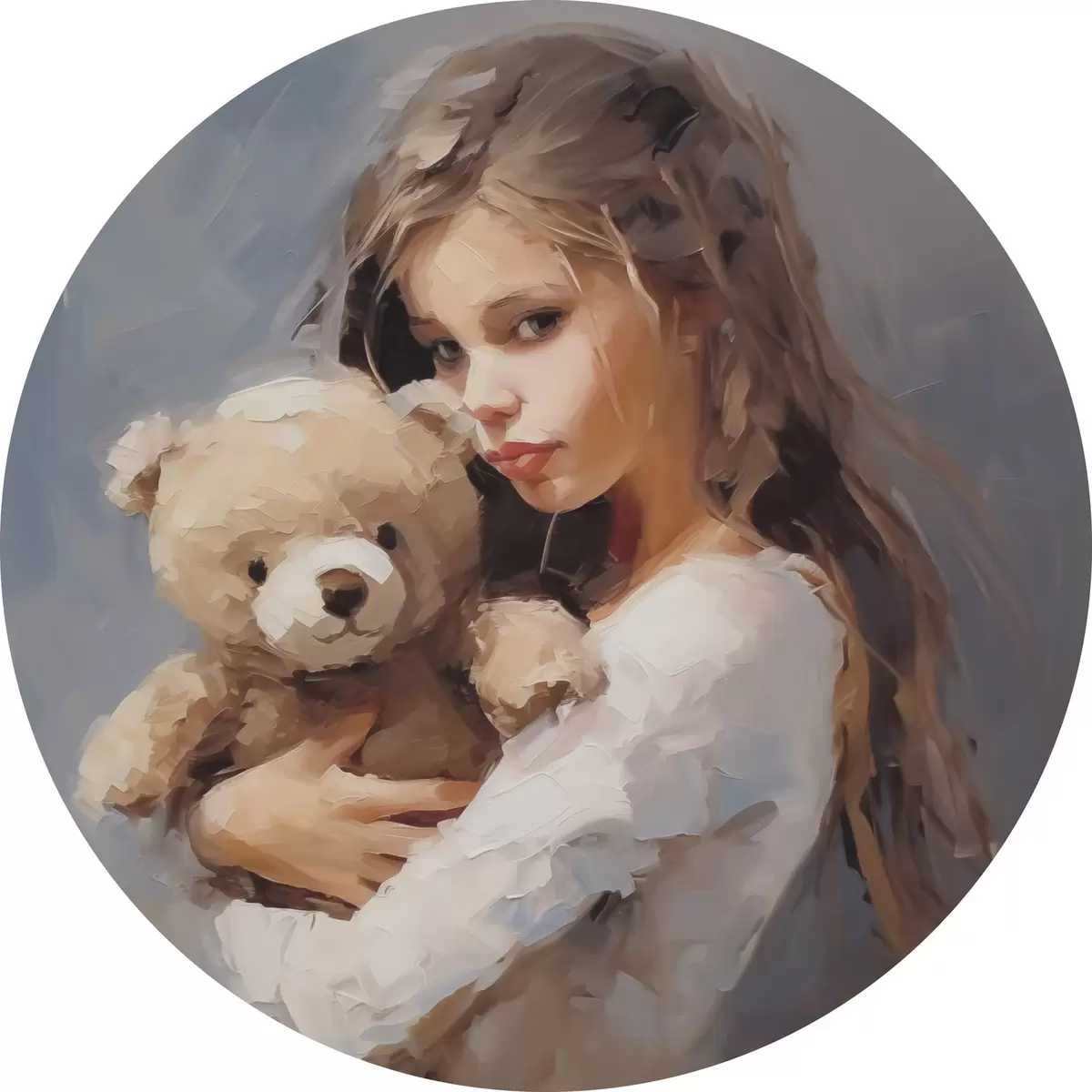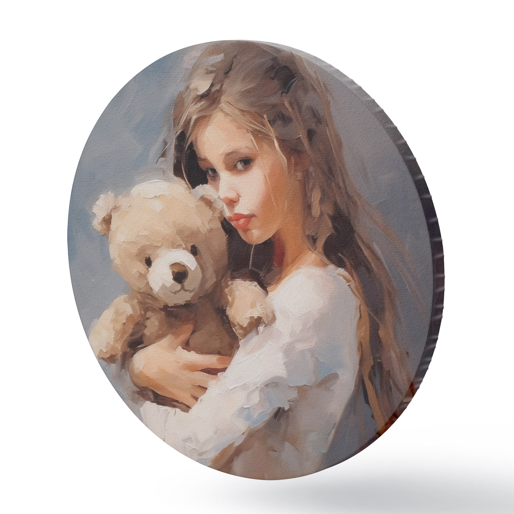 Tableaux ronds Fille avec un ours en peluche, imitation de peinture r46746