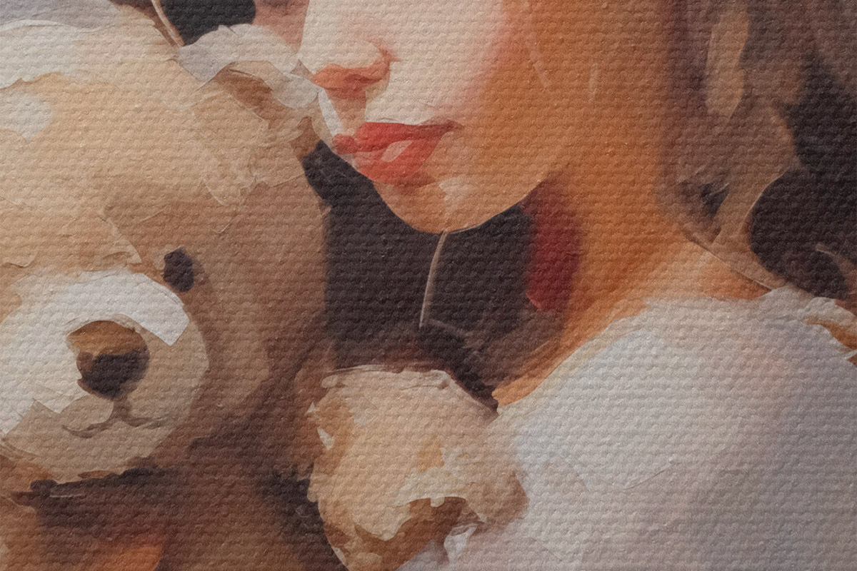 Trois types de matériaux peuvent être commandés : Economic Canvas - matériau dense et durable pour l'impression numérique, identique à la toile de peintre, surface imperméable, reproduction réaliste des détails, matériau à grain moyen. Premium Canvas - la texture ressemble à celle d'une toile de peintre (petits fils entrelacés). Reproduction douce et détaillée de l'image sur une surface mate. Eco-Premium - tissu 100 % coton de haute qualité. Grâce aux fibres naturelles de coton, le matériau est durable et résistant à l'usure. Excellente reproduction des couleurs et des détails.
