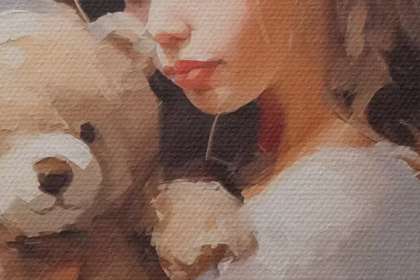 Image Fille avec un ours en peluche, imitation de peinture Nr r46746