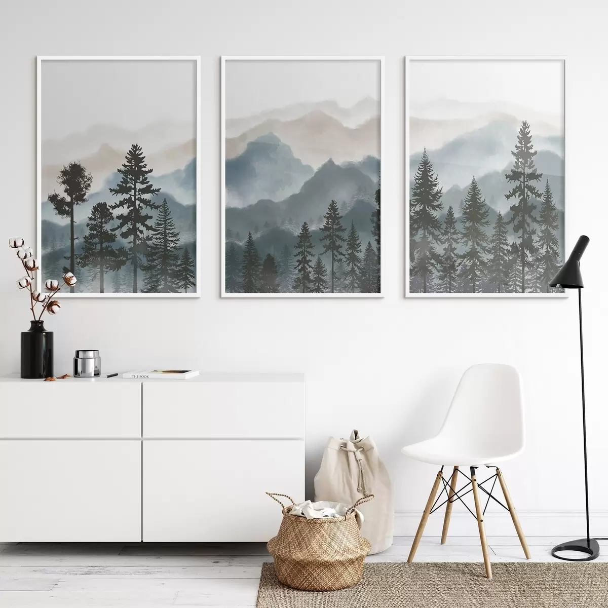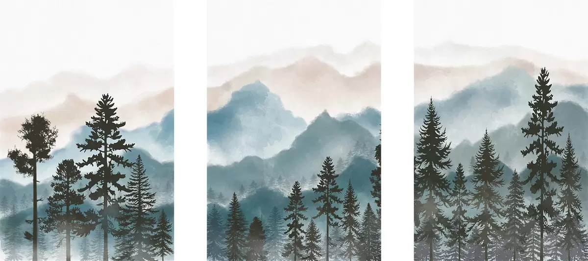 Poster Rustige bergen en silhouetten van bomen Nr d00244