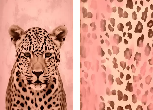 Poster Portret van een jachtluipaard, Abstract patroon met luipaardprint op een roze achtergrond Nr d00402