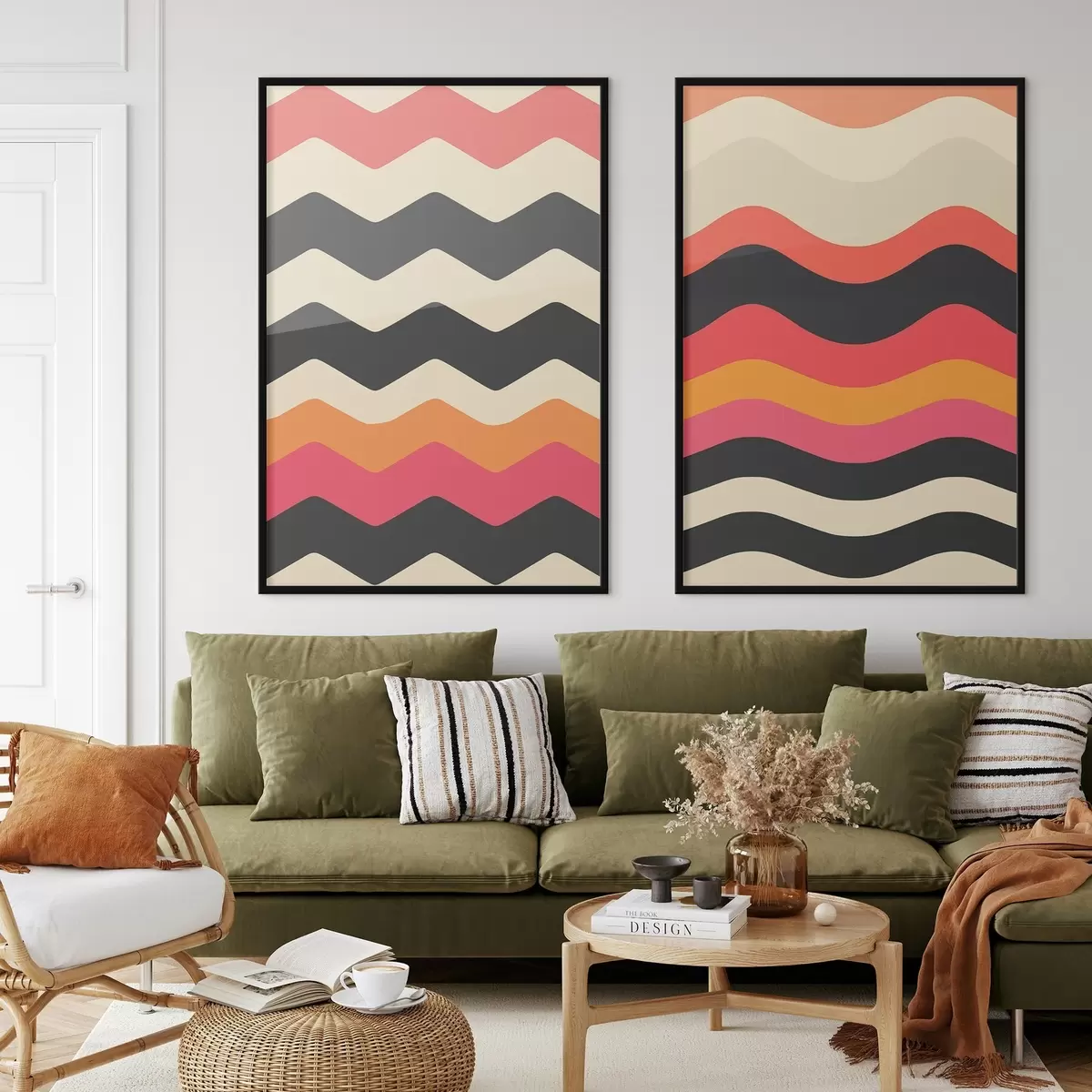 De poster bestaat uit een frame, plexiglas, geprinte afbeelding en spaanplaat achterkant. De poster kan meteen aan de muur worden gehangen dankzij de bevestigingen op de achterkant.