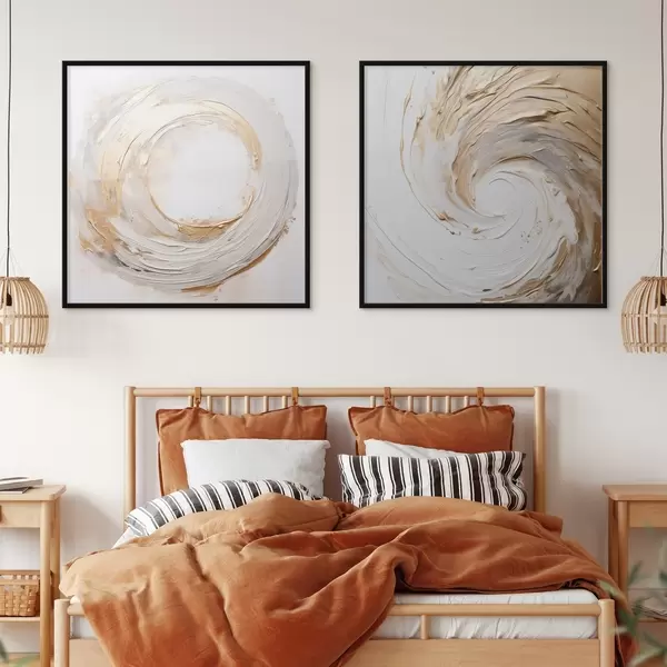 Je kunt het schilderij ophangen aan schroeven. Hiervoor leveren we bevestigingen bij onze foto's, zodat je de foto gemakkelijk kunt ophangen.