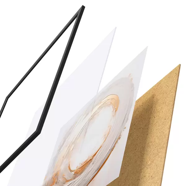 De poster bestaat uit een frame, plexiglas, geprinte afbeelding en spaanplaat achterkant. De poster kan meteen aan de muur worden gehangen dankzij de bevestigingen op de achterkant.