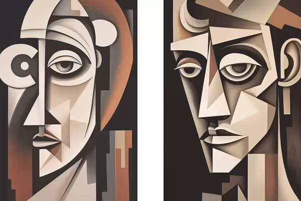 Poster Abstracte portretten in kubistische stijl d00550