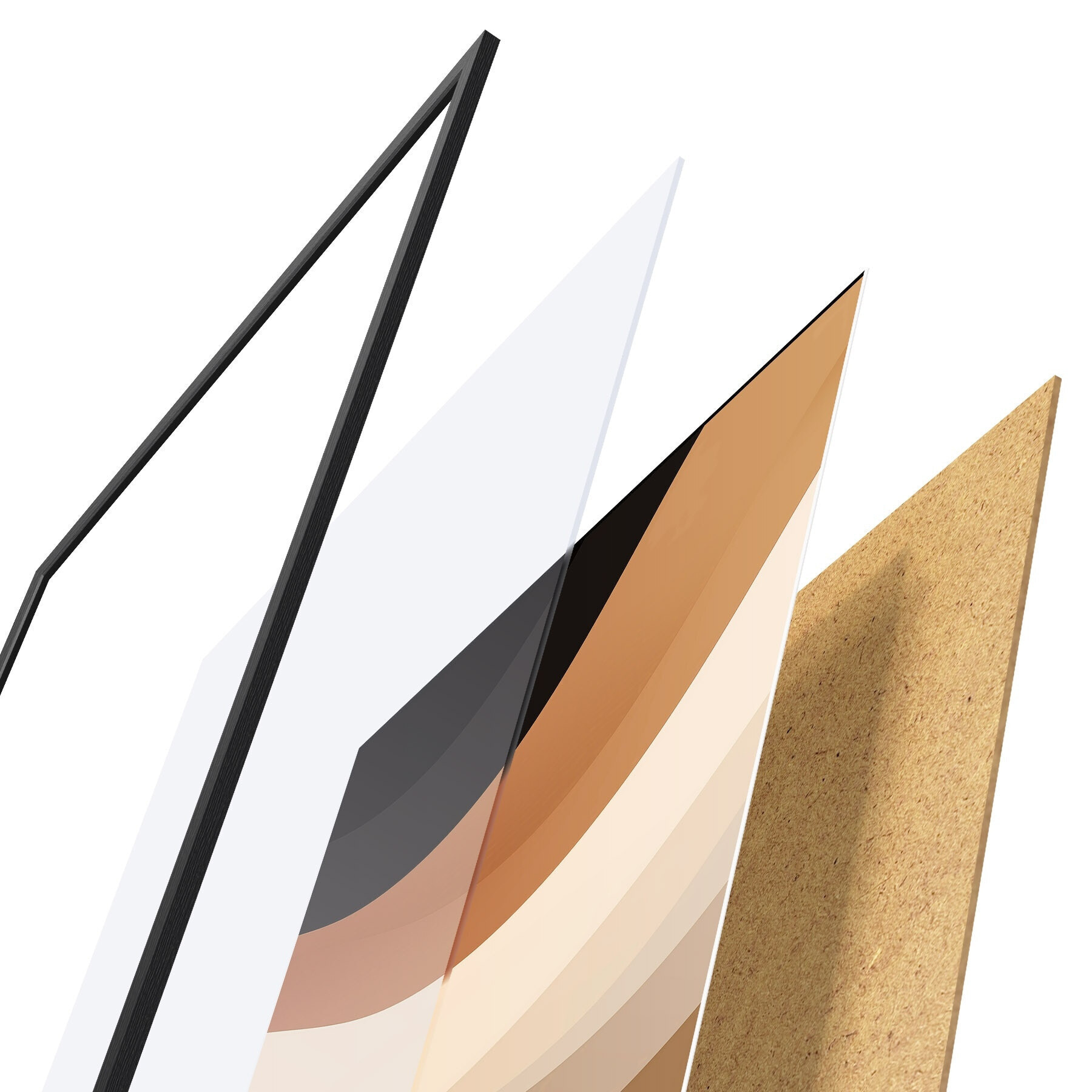 De poster bestaat uit een frame, plexiglas, geprinte afbeelding en spaanplaat achterkant. De poster kan meteen aan de muur worden gehangen dankzij de bevestigingen op de achterkant.