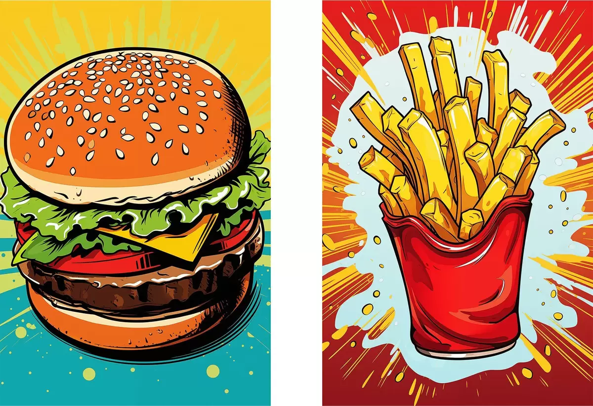 Poster Friet en hamburger Nr d00556