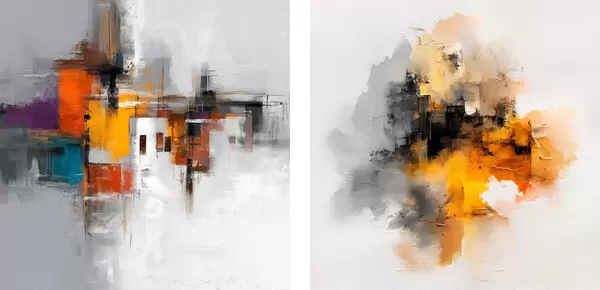 Poster Expressieve stad: kunstcompositie met contrasterende kleuren Nr d00566