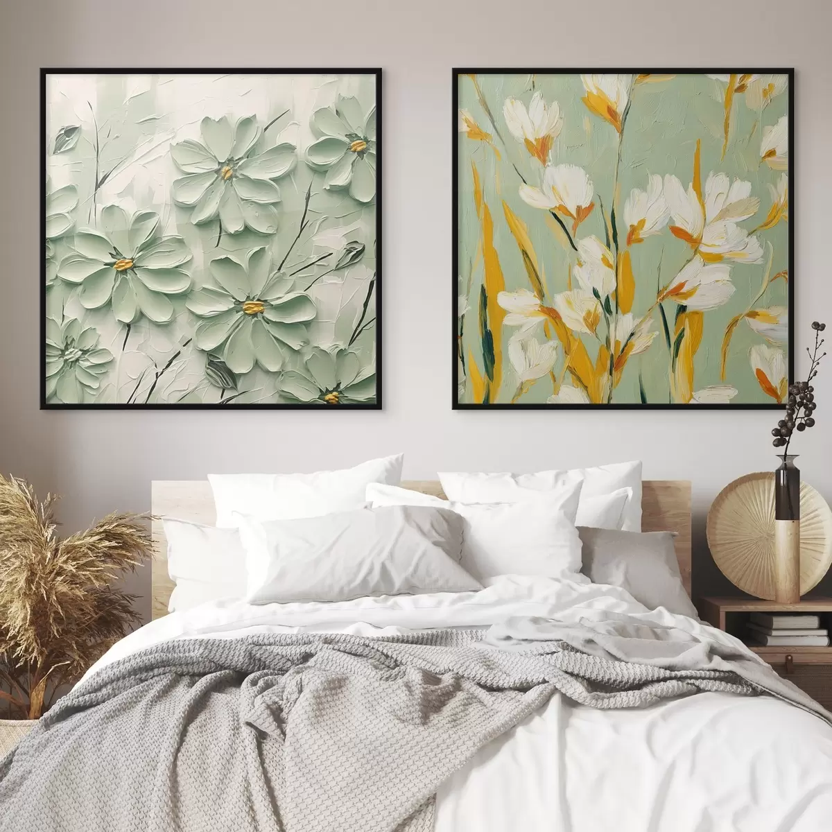 Poster Bloemenweide: kunstcompositie met volumetrische bloemen op een pastelachtergrond Nr d00567