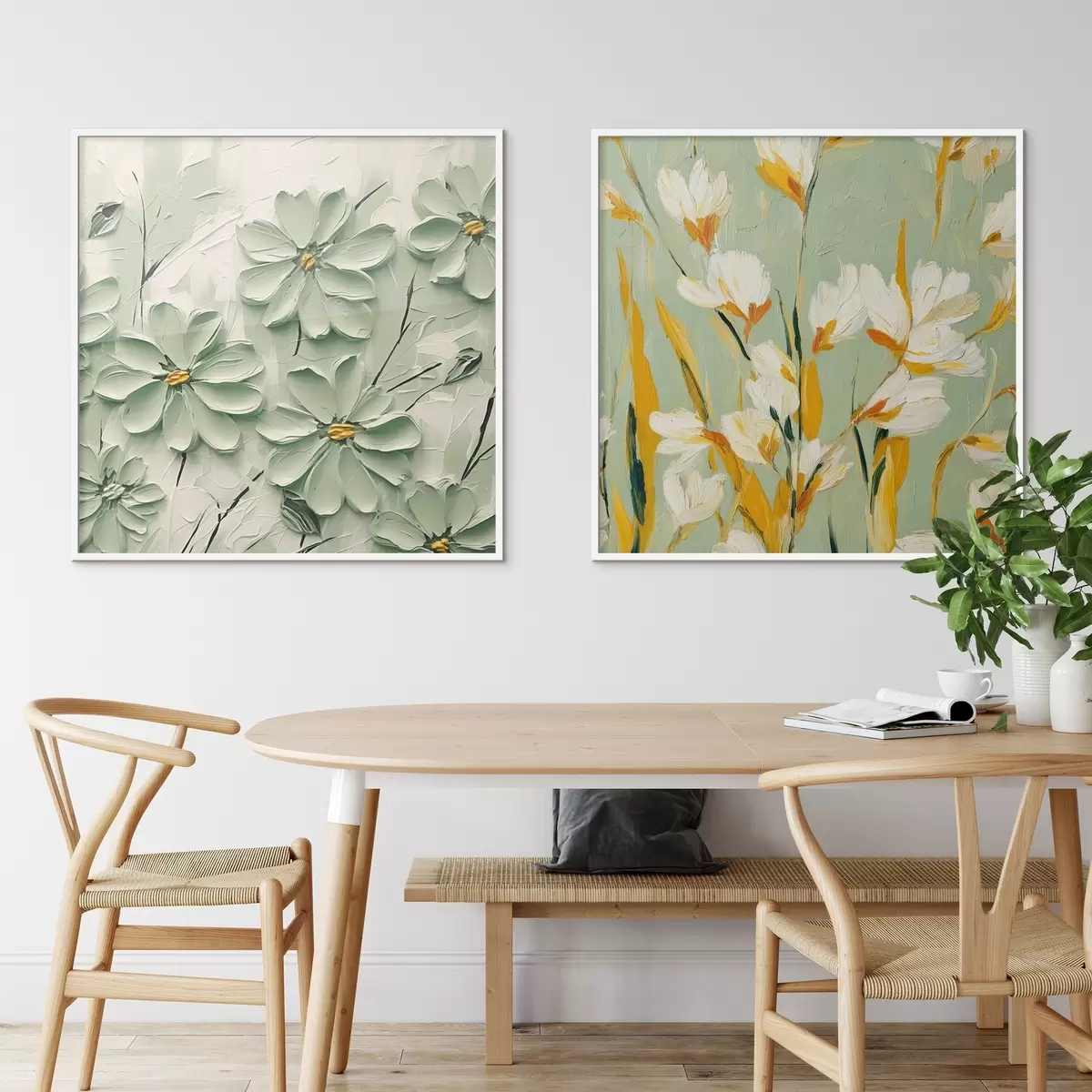 Poster Bloemenweide: kunstcompositie met volumetrische bloemen op een pastelachtergrond d00567