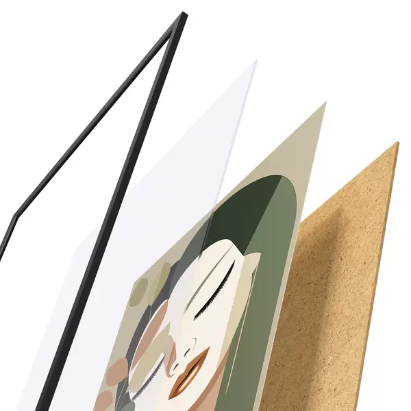 De poster bestaat uit een frame, plexiglas, geprinte afbeelding en spaanplaat achterkant. De poster kan meteen aan de muur worden gehangen dankzij de bevestigingen op de achterkant.