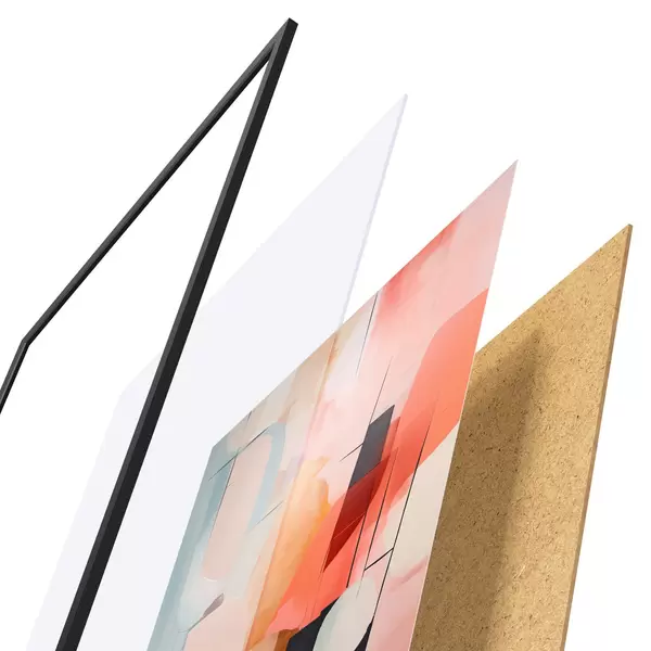 De poster bestaat uit een frame, plexiglas, geprinte afbeelding en spaanplaat achterkant. De poster kan meteen aan de muur worden gehangen dankzij de bevestigingen op de achterkant.