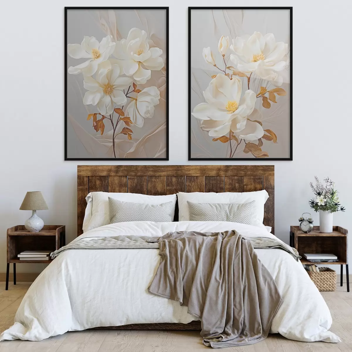Je kunt het schilderij ophangen aan schroeven. Hiervoor leveren we bevestigingen bij onze foto's, zodat je de foto gemakkelijk kunt ophangen.