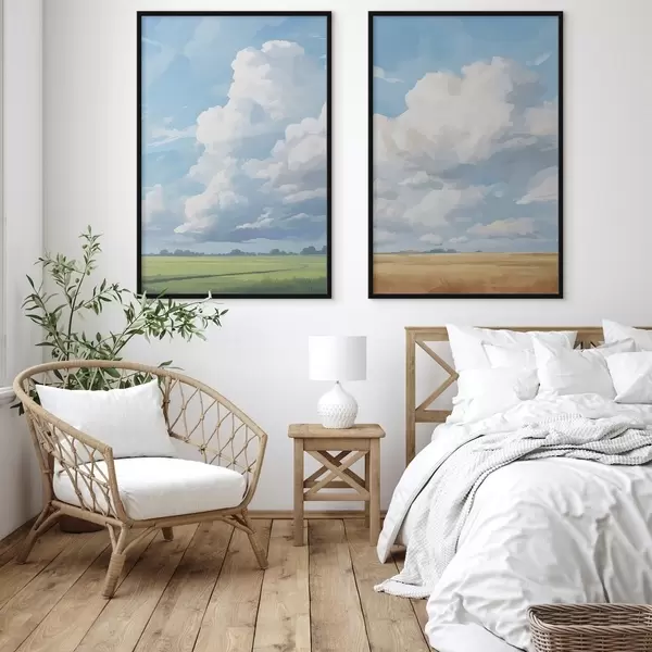 Poster Veld tegen de lucht met enorme wolken Nr d00624