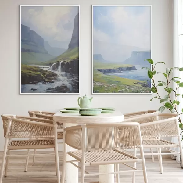 Je kunt het schilderij ophangen aan schroeven. Hiervoor leveren we bevestigingen bij onze foto's, zodat je de foto gemakkelijk kunt ophangen.