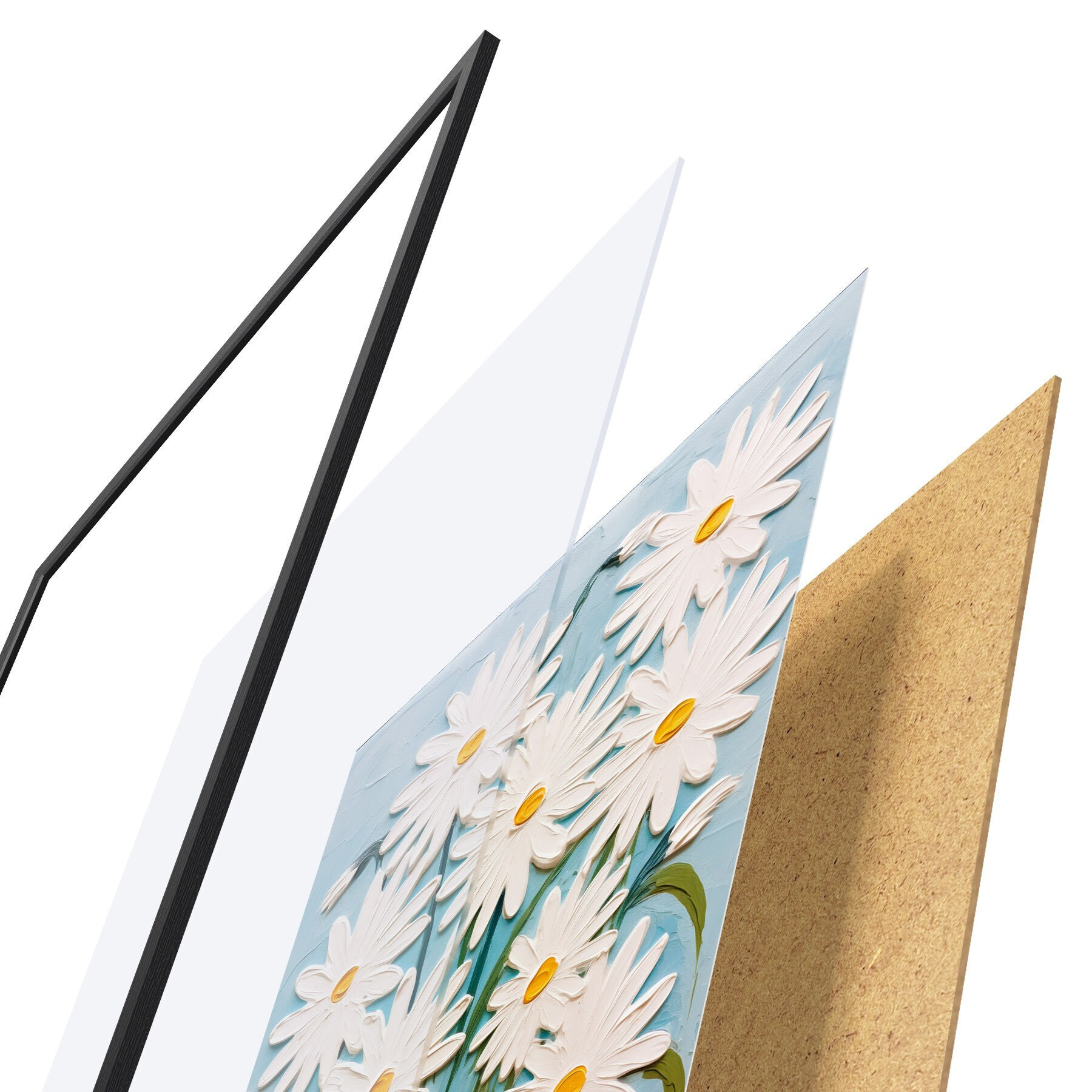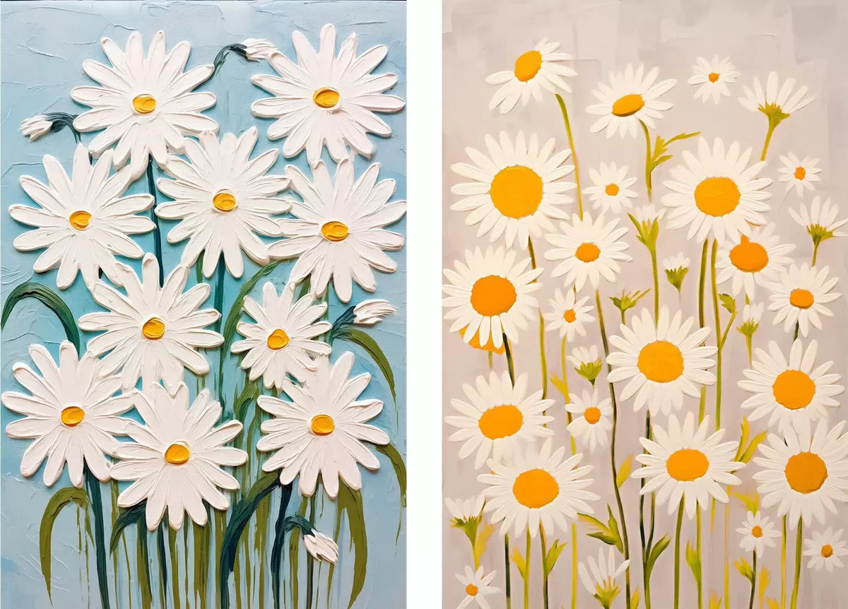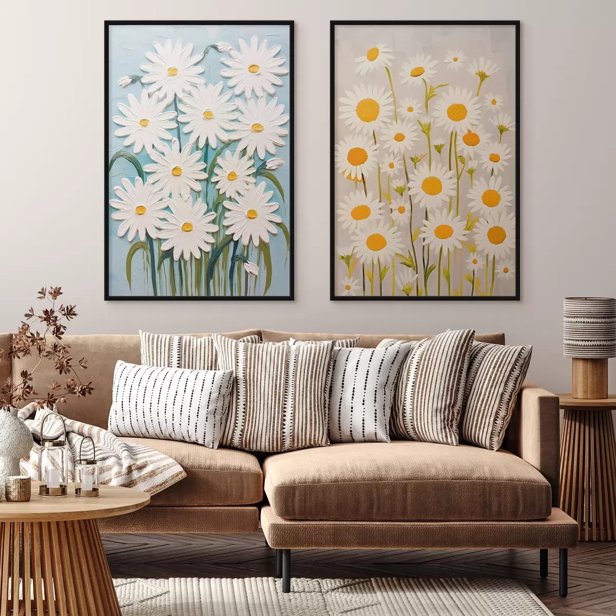 Poster Lentefrisheid: tweeluik met volumineuze margrieten in impasto stijl Nr d00633
