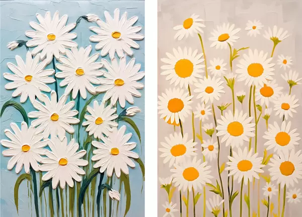 Poster Lentefrisheid: tweeluik met volumineuze margrieten in impasto stijl Nr d00633