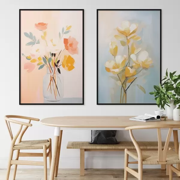 Poster Bloemen in een vaas: tekenen in de stijl van olieverfschilderijen Nr d00636