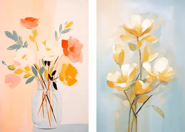 Poster Bloemen in een vaas: tekenen in de stijl van olieverfschilderijen Nr d00636