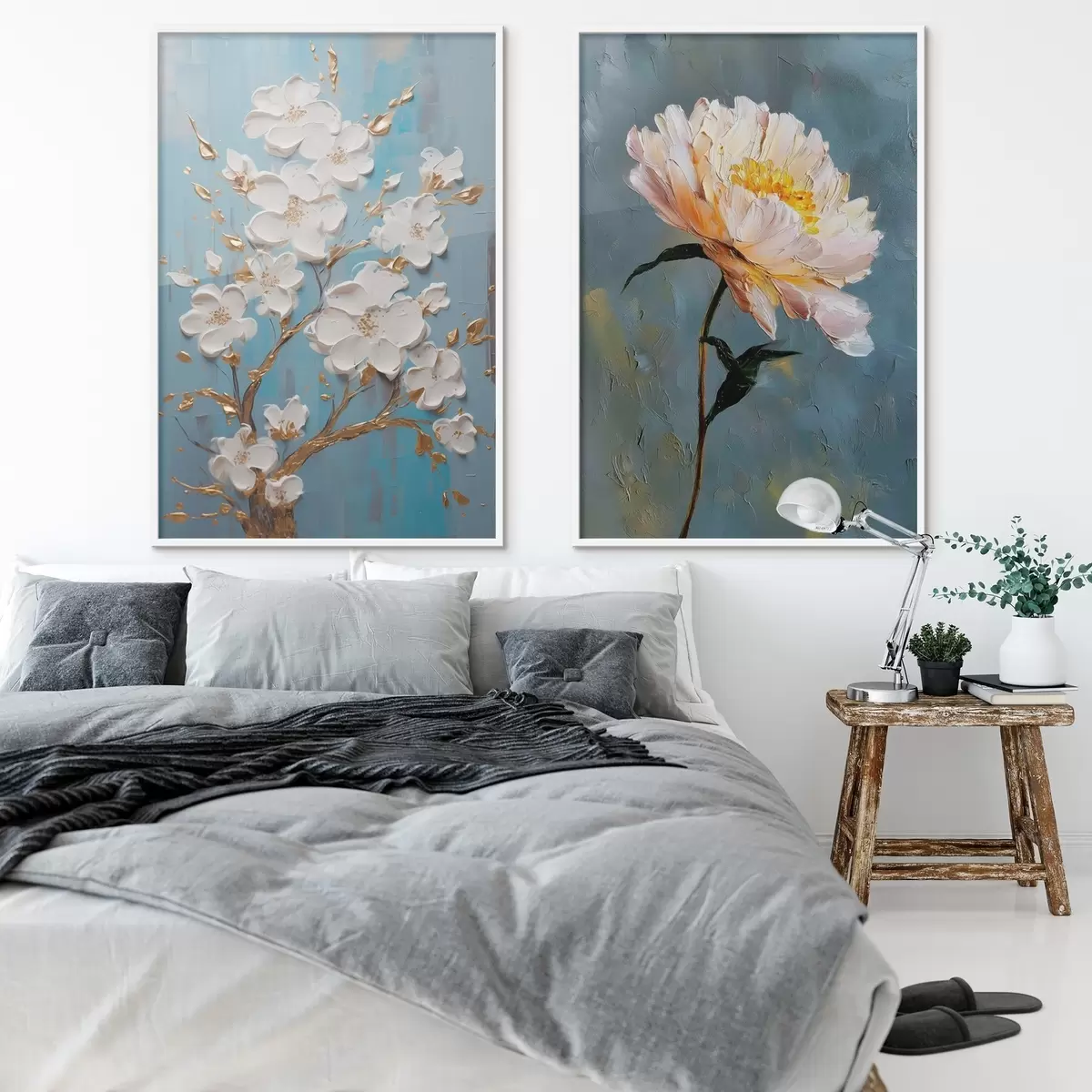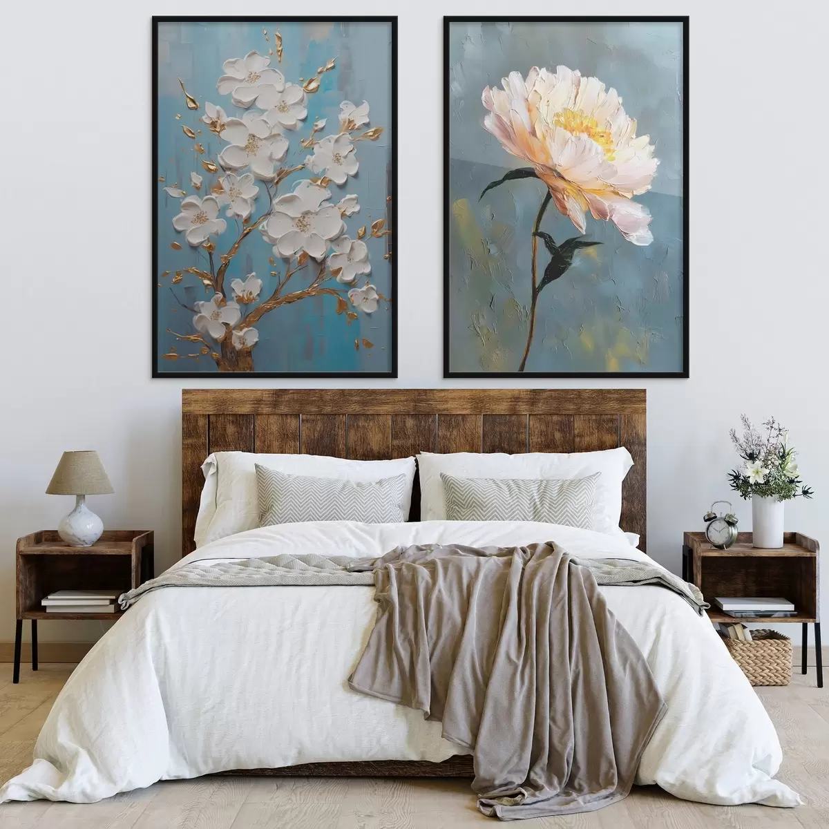 Poster Bloeiende tak en pioenroos: compositie in reliëf d00637