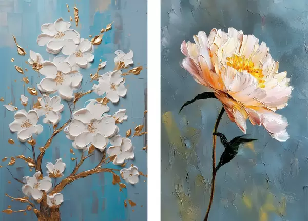 Poster Bloeiende tak en pioenroos: compositie in reliëf d00637