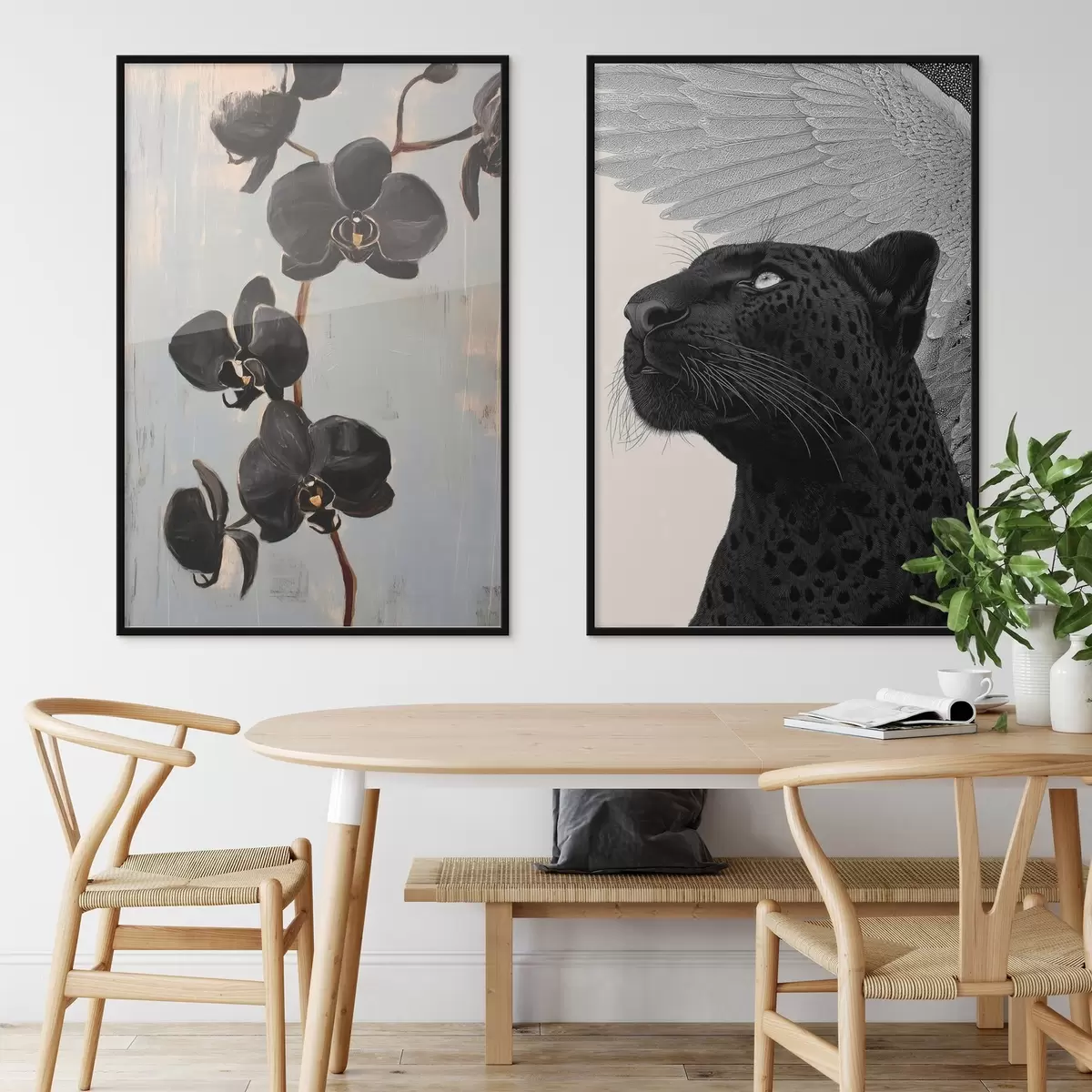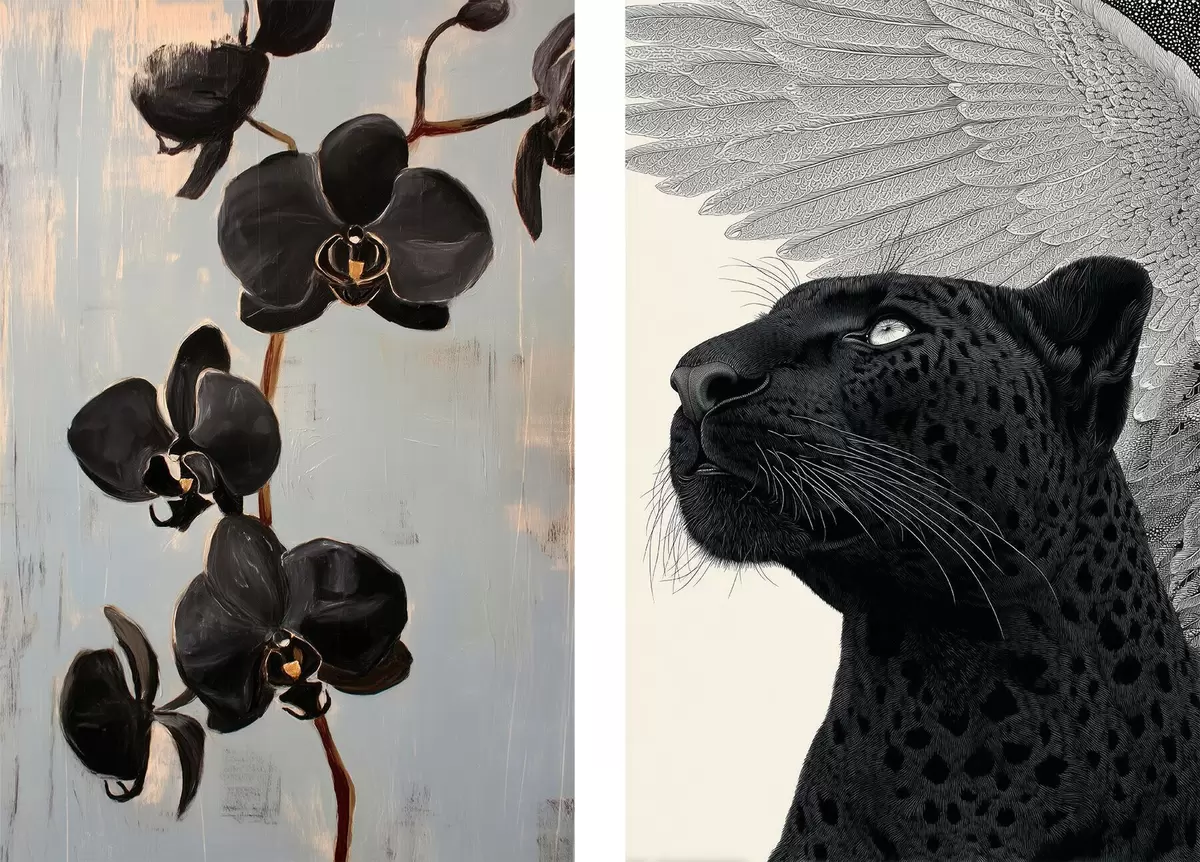 Poster Donkere orchideeën en gevleugeld beest: artistieke compositie Nr d00640